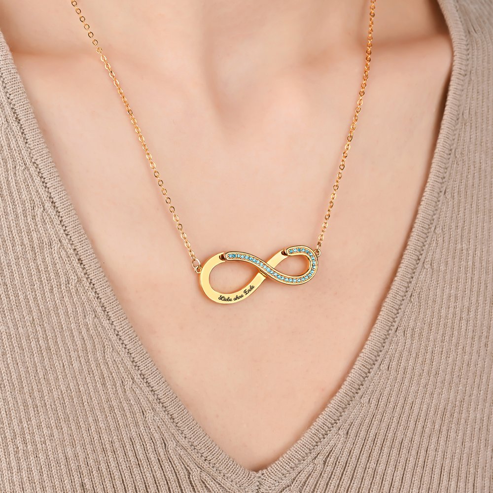 Die hochwertige Unendlichkeitshalskette ist eine wunderbare Möglichkeit, jemandem zu zeigen, wie sehr man ihn schätzt. Das auffällige Unendlichkeitssymbol zieht automatisch alle Blicke auf sich. Der Anhänger dieser Kette bietet zwei Formen, die Sie ganz nach Ihrem Outfit anpassen können.