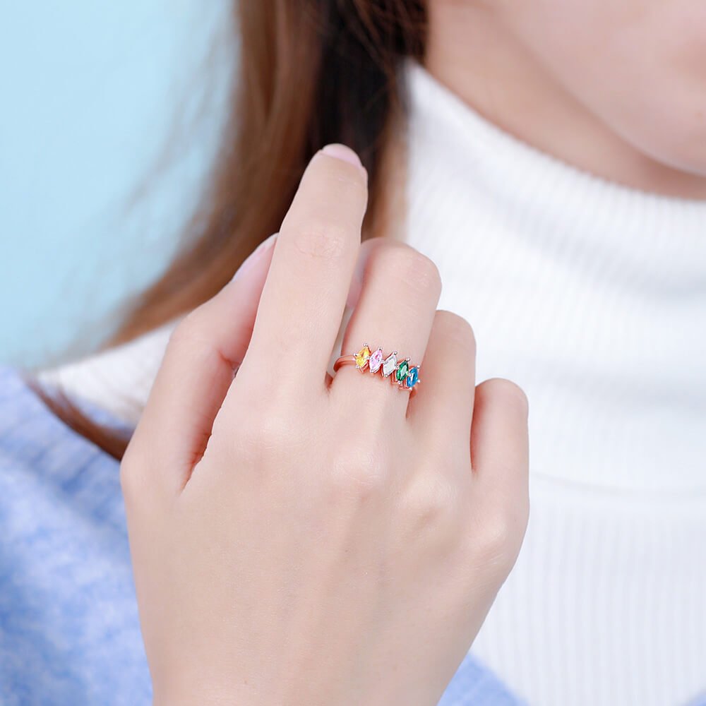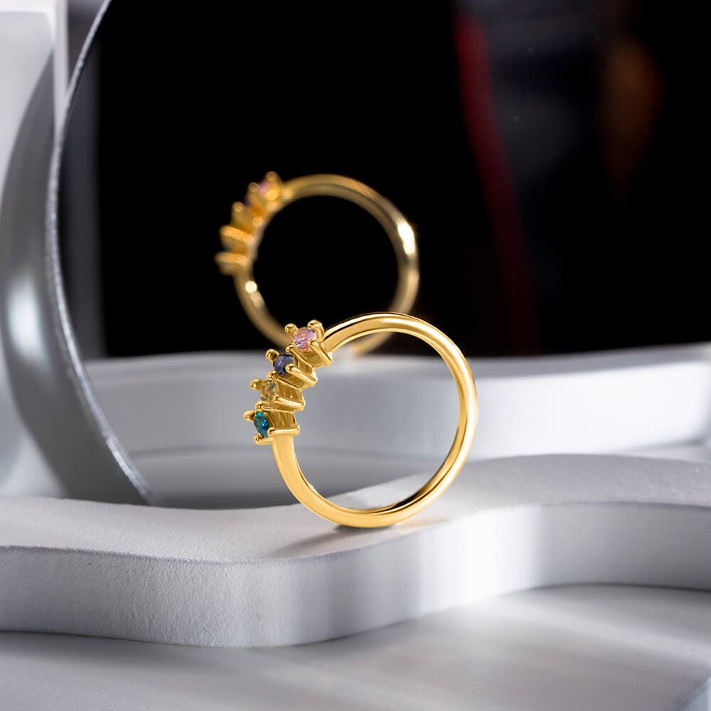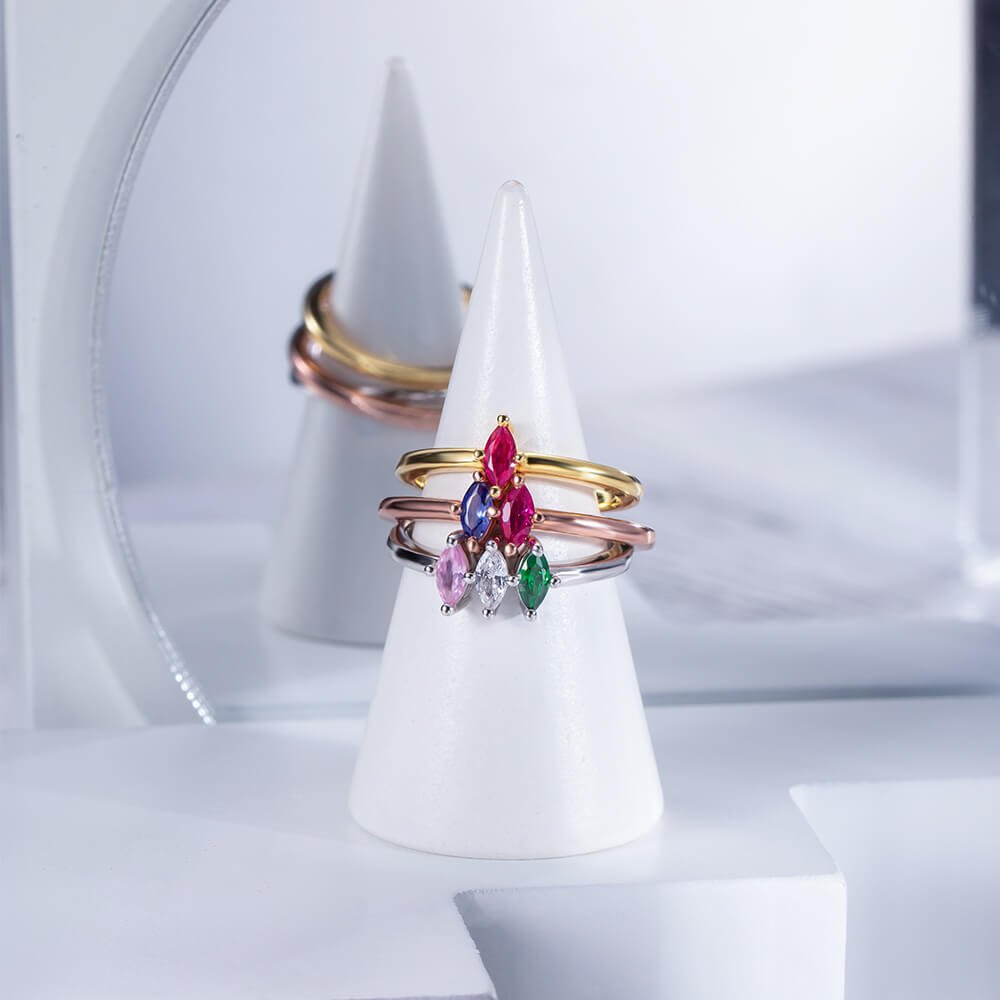 Stil: Geburtsstein-Familienring Breite des Ringbandes: 1,5 mm (0,06 Zoll) Dicke des Rings: 1,5 mm Maße Geburtssteingröße: 5 * 2,5 mm (0,2 * 0,1 Zoll) Material Sterling Silber 925