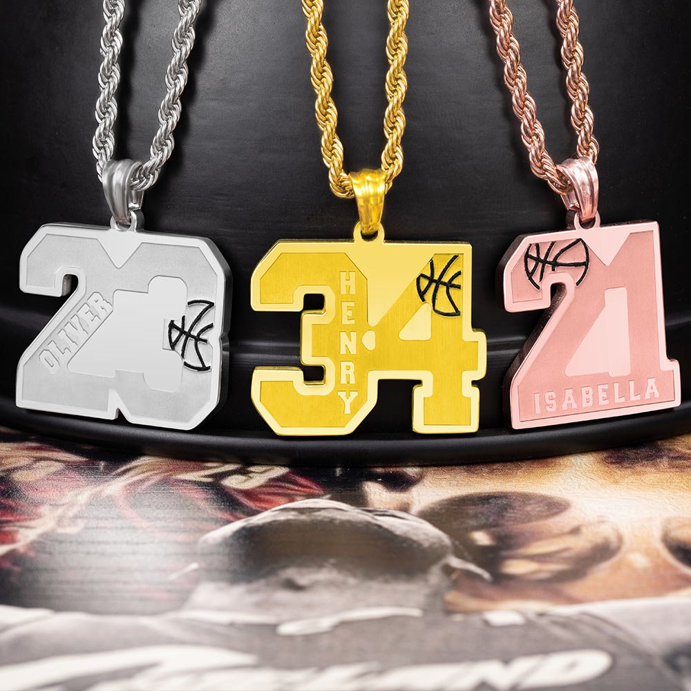 Personalisiere diese Basketball-Halskette mit der einmaligen Trikotnummer von dir oder deinem Lieblingsspieler!