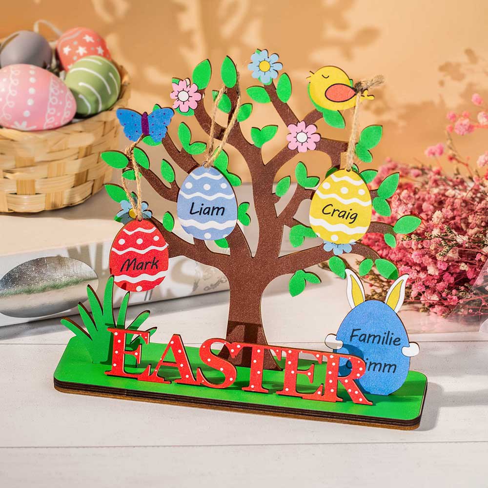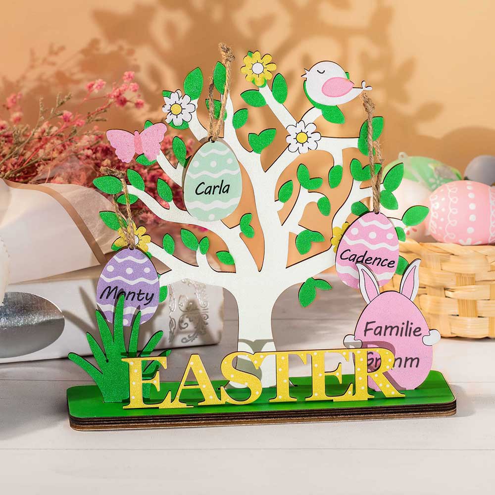 Personalisierte Ostereier Baum aus Holz Eier mit Hasenohren und Namen Frühlingsthema Ostern Deko Geschenk für Familie Kinder
