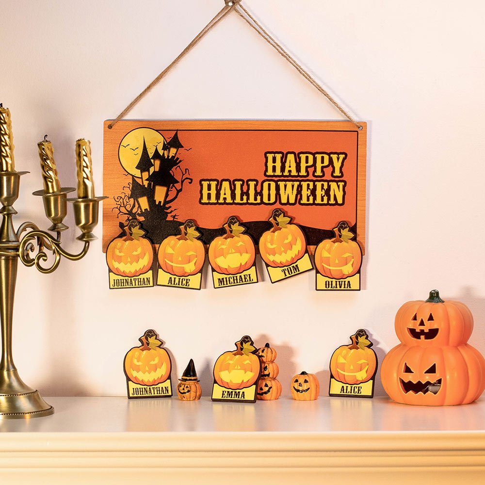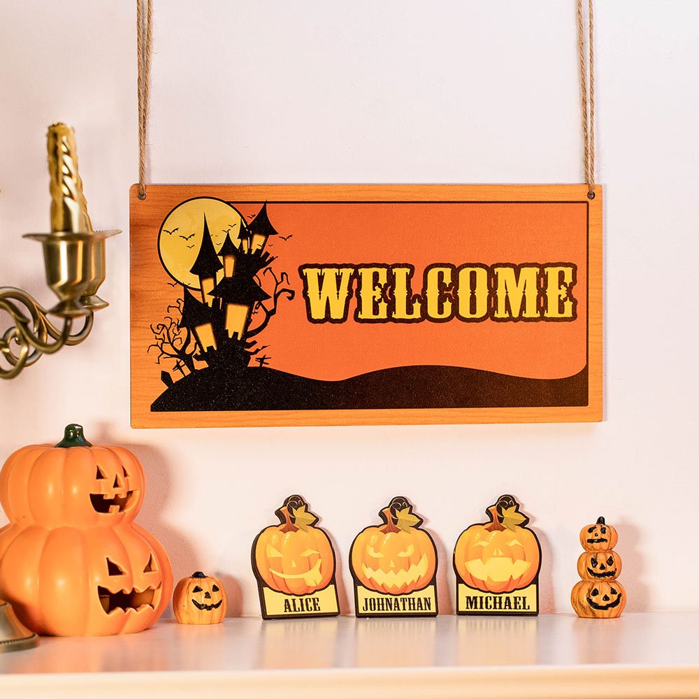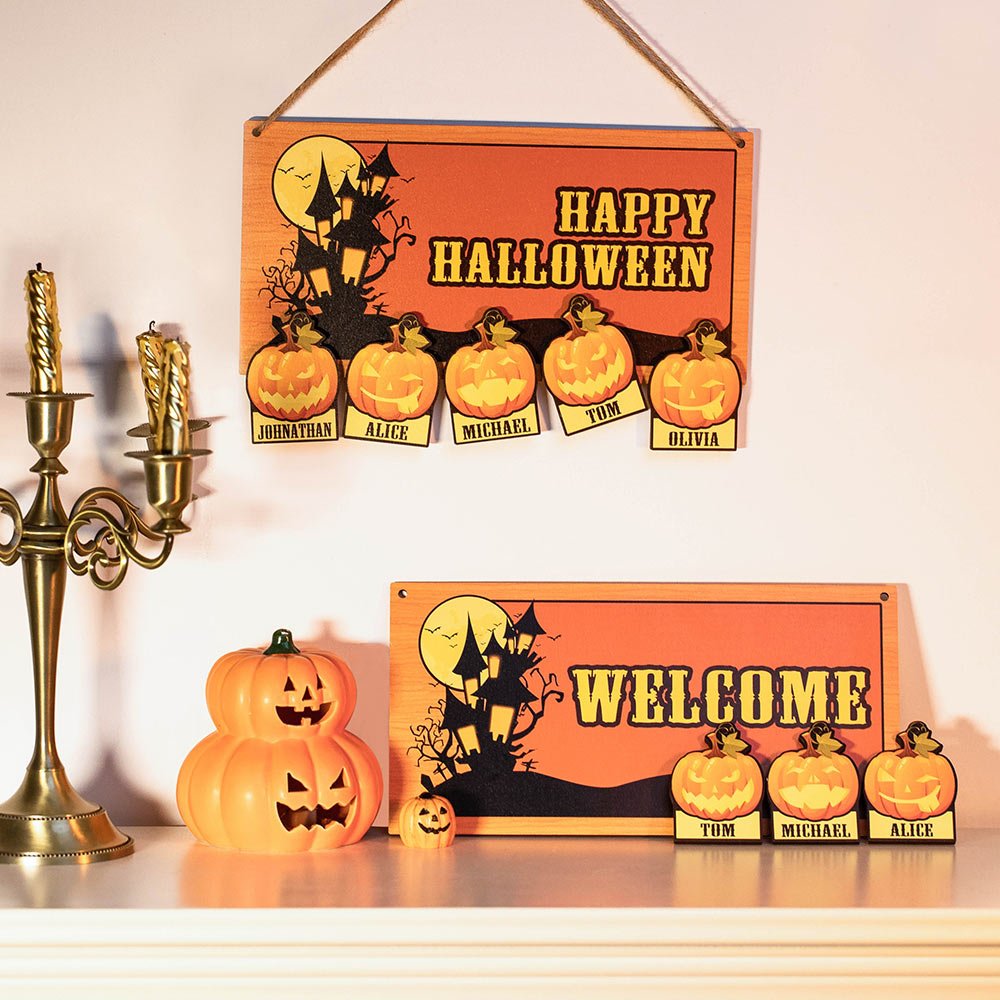 Sie können das Kürbis-Emoji und den Familiennamen auf dem Kürbis anpassen, zusätzlich zu den Wörtern auf dem Holzschild mit Ihren Wünschen, "unser kleiner Kürbis", "Nanas Kürbis", "Omas Kürbis" hinzufügen, um die festliche Atmosphäre von Halloween und die Gefühle der Familie zu schaffen.