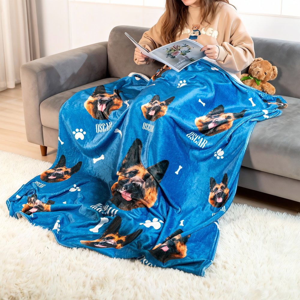 Sie können diese schöne Decke mit einem Foto Ihres Lieblingshaustieres gestalten. Fügen Sie auch den Namen Ihres Haustieres hinzu.