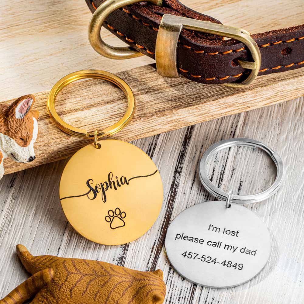 Sie können den Namen des Tieres anpassen, und wenn Sie möchten, können Sie auch die Telefoninformationen auf der Rückseite anpassen, usw. Wenn das Haustier verloren gegangen ist, können andere Personen den Besitzer sofort kontaktieren, wenn sie es sehen.