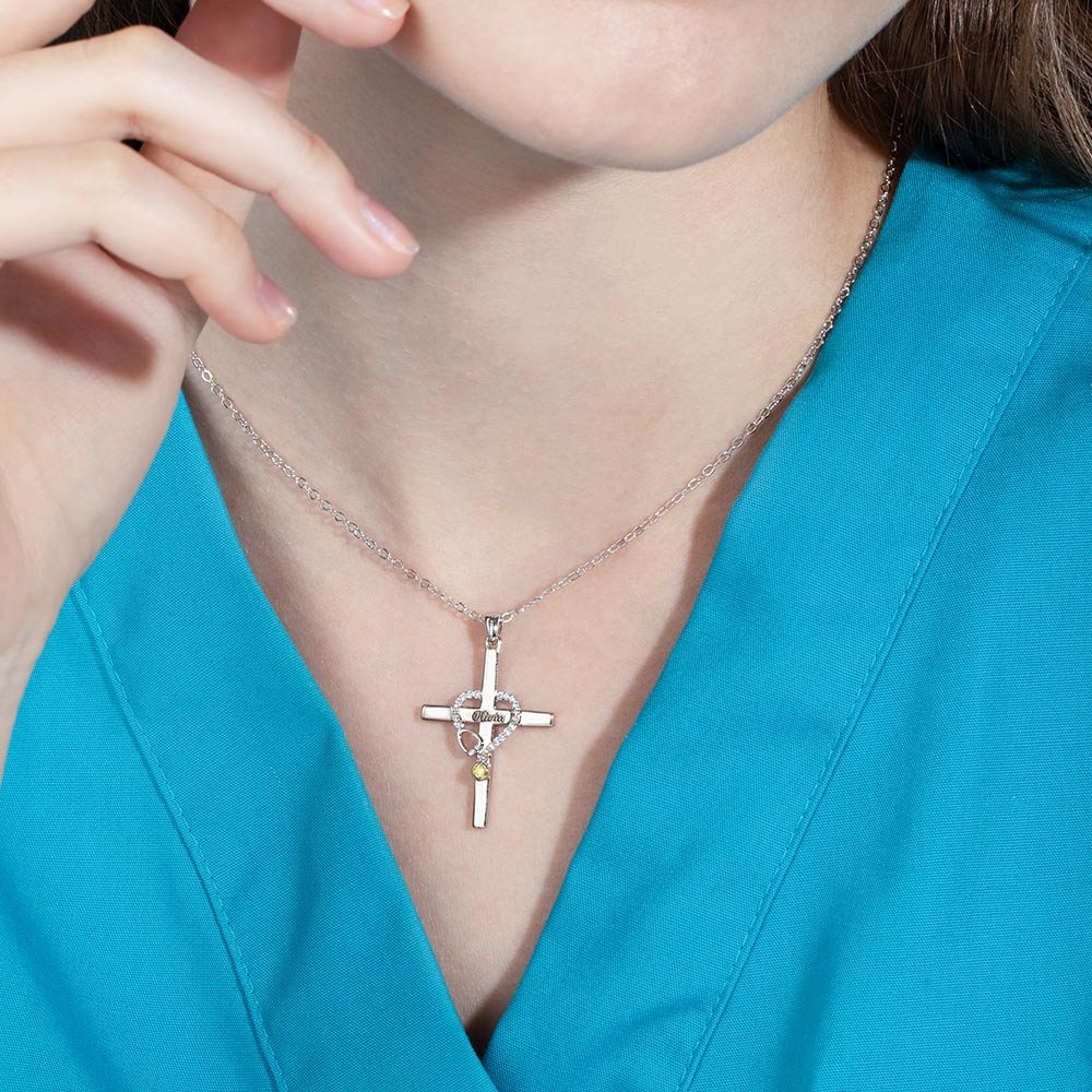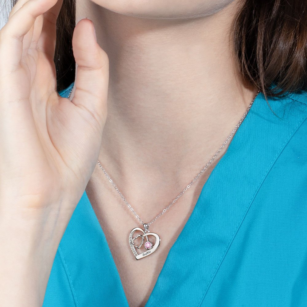 Sie können den speziellen Namen, die Farbe des Geburtssteins und das Material anpassen, um diese Stethoskop-Halskette einzigartig zu machen.