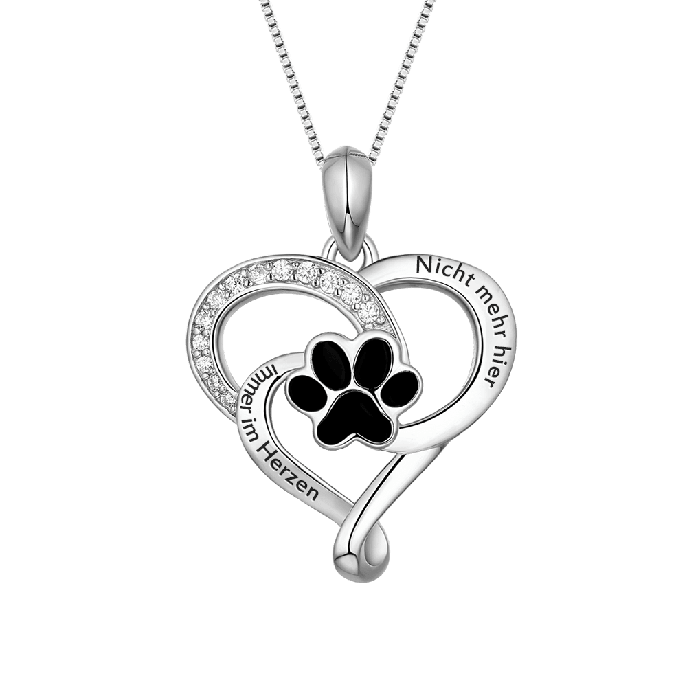• Callie bietet Hundebesitzern ein süßes und bedeutungsvolles Geschenk mit einer Halskette, die von Welpenfüßen und eingravierten Wörtern geschmückt ist. Krallen als kreatives und lustiges Symbol Ihres Welpen passen gut zur Herzform und funkelnden Kristallen an der Seite der Herzform.