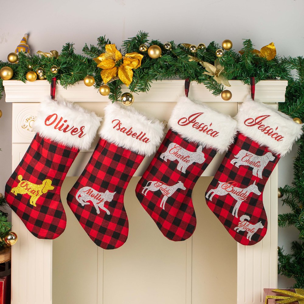 Die Oberfläche von karierten Weihnachtsstrümpfen ist aus hochwertigem Stoff und der Innenstoff der Socken ist durch Nähen und exquisite Verarbeitung verstärkt, weich und robust. Entzückende Weihnachtsstrümpfe können auch nach dem Befüllen gut hängen bleiben.