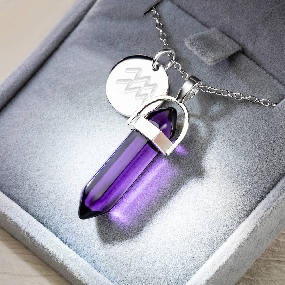 • Elegantes Design: Der fein verarbeitete Kristall mit 6 facettierten Edelstein bietet Ihnen 12 Farben zur Auswahl. Jede Farbe steht für einen Monat. Sie können die Sternzeichen auf der kleinen Scheibe personalisieren, um ein einzigartiges Geschenk für sie zu erstellen. Außerdem passt die schöne Halskette zu jedem Kleidungsstil.