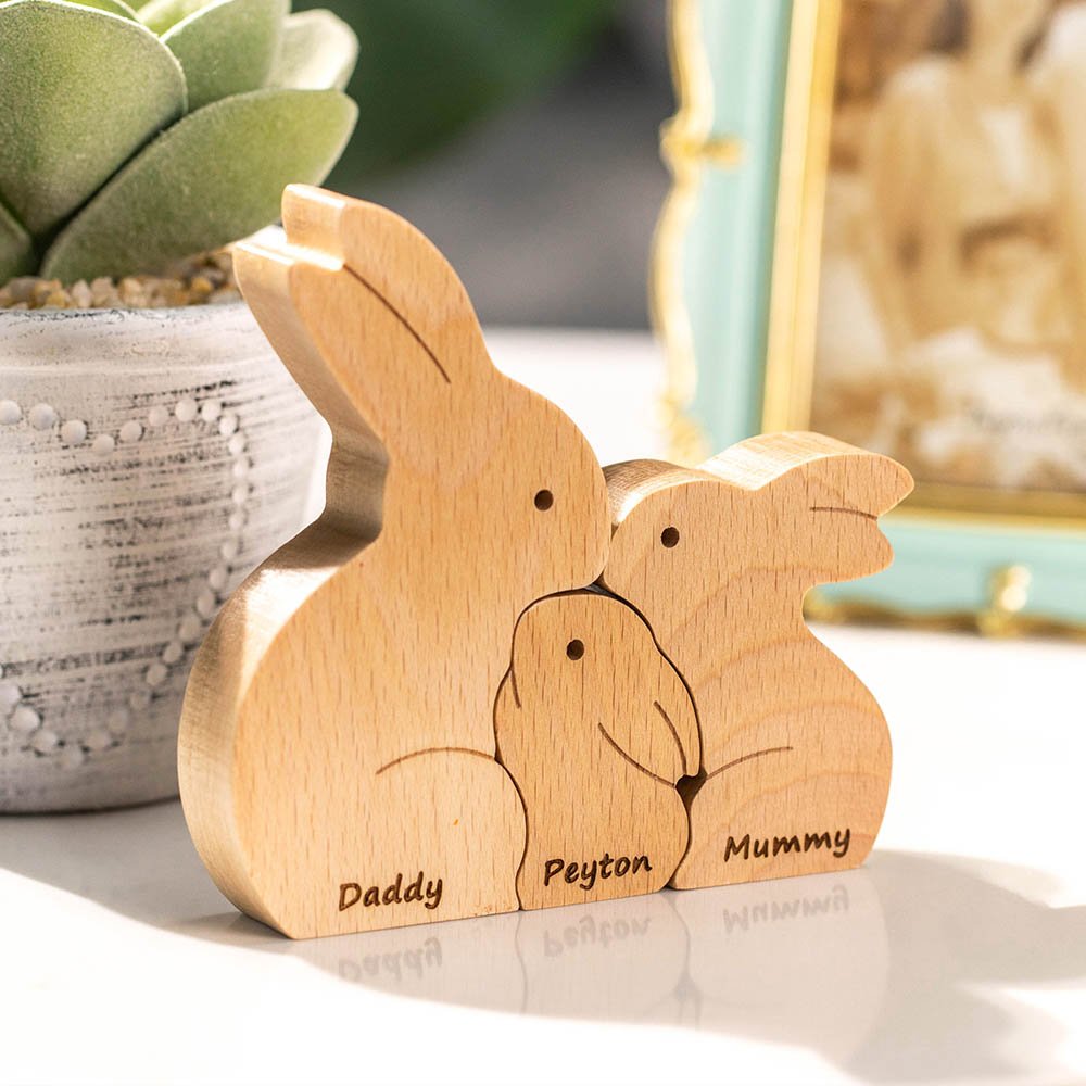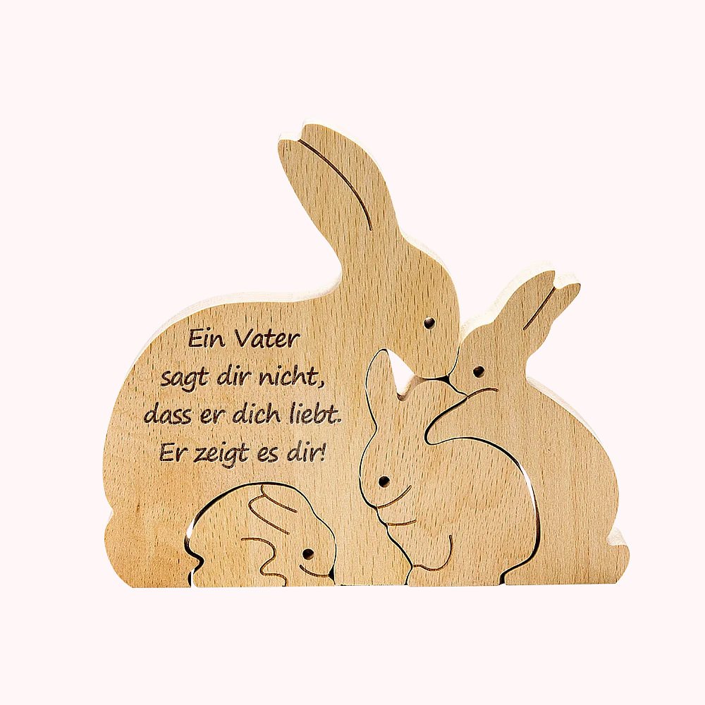 • Diese Hasenfamilie-Dekoration ist aus Holz, leicht, stark und langlebig und nicht leicht zu beschädigen. Im Design stellen die beiden größeren Hasen Mutter und Vater dar, während die kleinen Hasen, die in ihren Armen liegen, Kinder und Kinder darstellen. Die Implikation drückt die Harmonie und Wärme der Familie aus, zeigt aber auch die unendliche Liebe der Eltern zu ihren Kindern und ihre Abhängigkeit von ihren Eltern. Gleichzeitig kann diese Dekoration auch als Puzzle-Spielzeug für Ihre Kinder verwendet werden, um zu spielen und ihre Intelligenz in der Unterhaltung zu entwickeln.