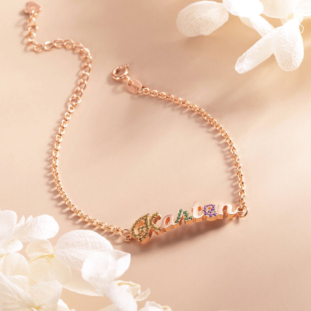 Bunt funkelnde April-April-April-April-April-April-April-Kristalle, die auf dem Namen angebracht sind, glänzen in allen Facetten. Die schlanken Linien und das feine Kunstwerk unterstreichen die Qualität und Einzigartigkeit. Tragen Sie sie einzeln oder stapeln Sie sie, um einen Look brillant zu vollenden. Personalisieren Sie Ihre mit inspirierenden Worten oder Namen Ihrer besonderen Menschen.