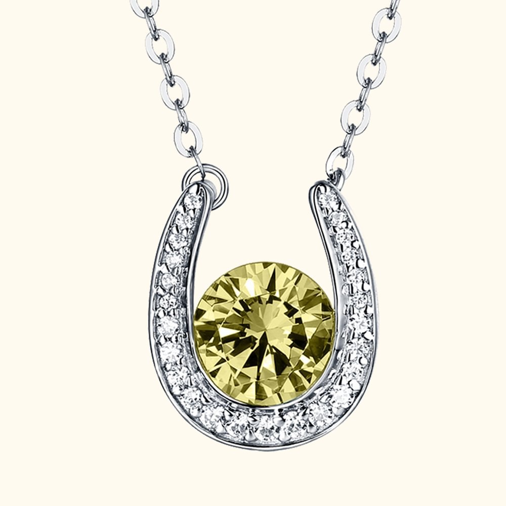 •Diese hufeisenförmige Halskette mit eingelegtem funkelnden Geburtsstein in der Mitte liefert Liebe ""U"" und Glück, die Frauen sicherlich in Erstaunen versetzen wird. Die U-Form ist komplett mit klar schimmernden Kristallen verziert. Sorgfältig von Hand gefertigt, präsentiert der Hufeisen-Anhänger ein super glänzendes Outfit für den Träger.