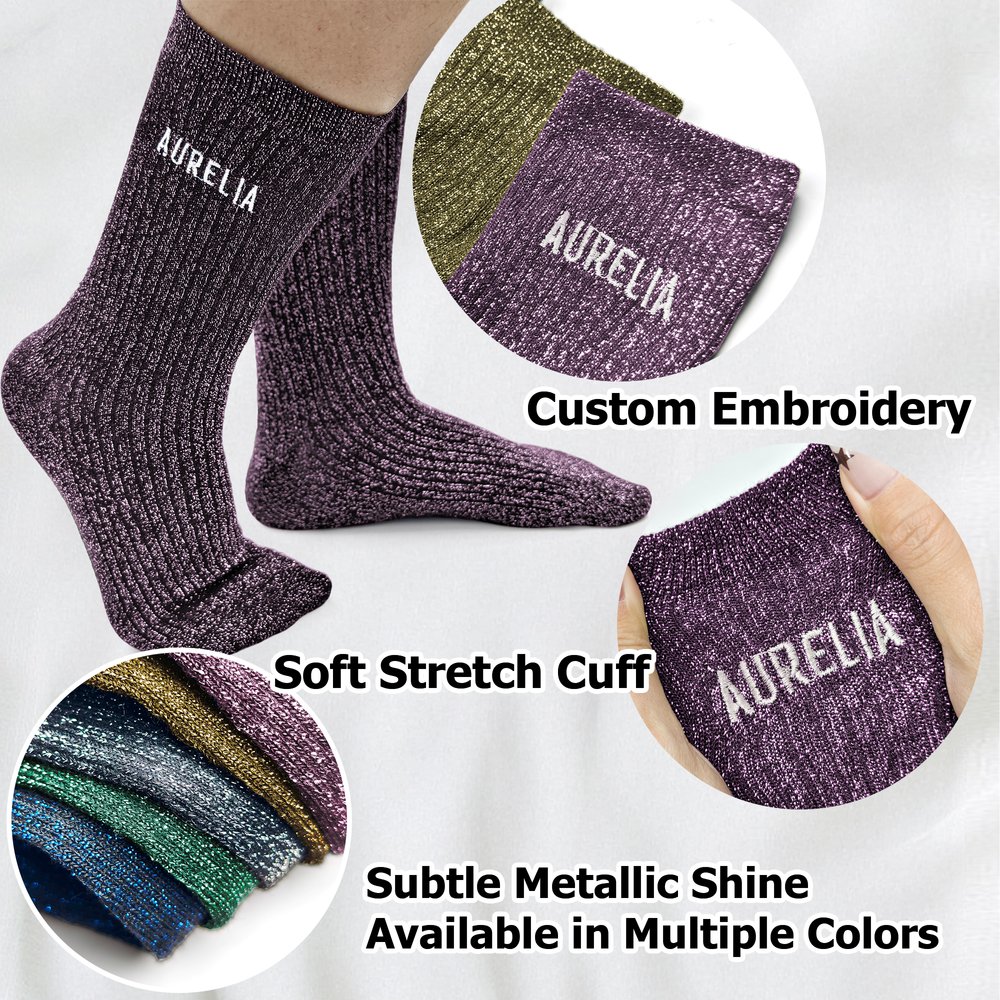 Personalisierte gestickten Namen Glitter Multicolor Mid-Calf Socken weichen täglichen Verschleiß Partei Geburtstag Geschenk für Frau