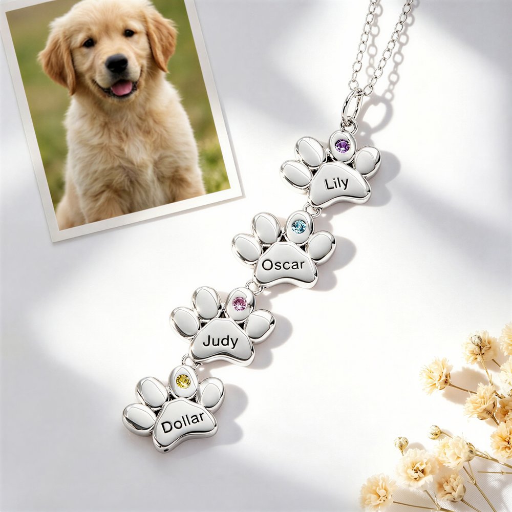 Personalisierte 1-12 Paw Print Birthstone Halskette Exquisite Schmuck mit eingravierten Namen Jahrestag Geburtstag Geschenk für Tierhalter Liebhaber