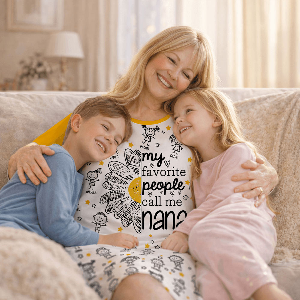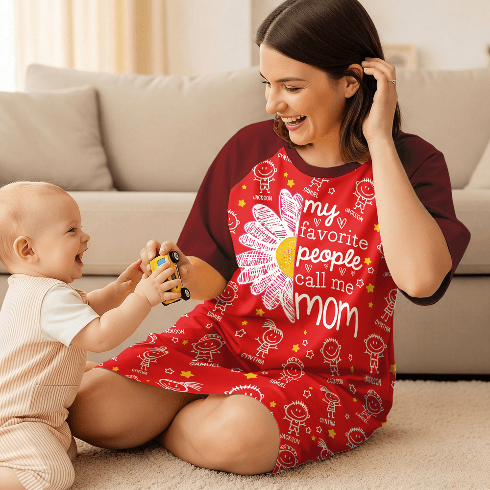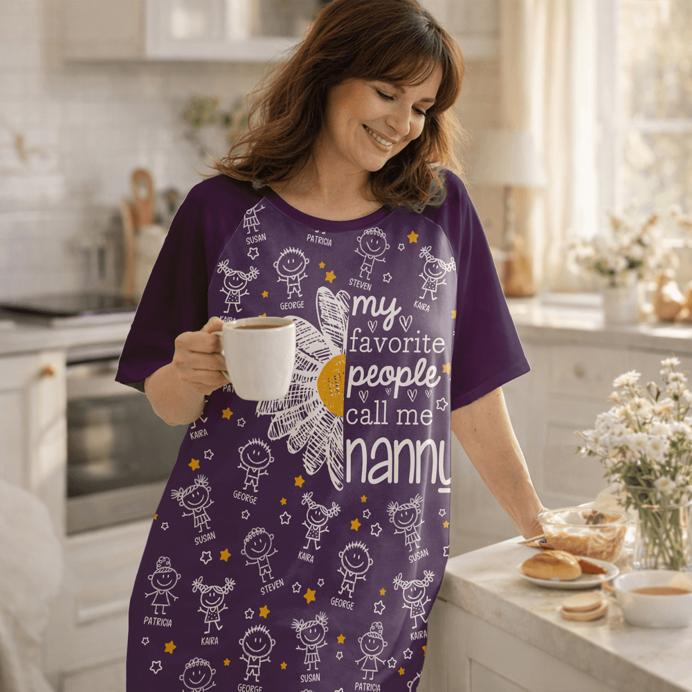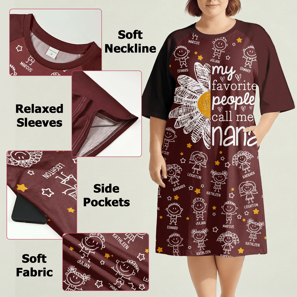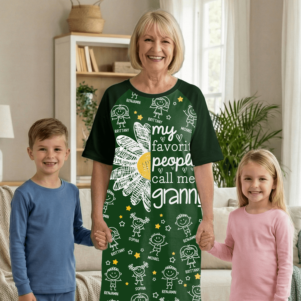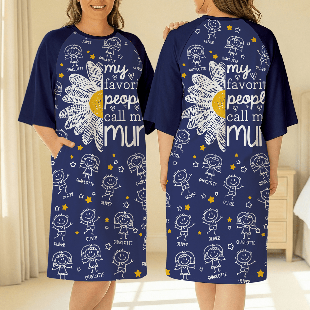 Personalisierte 1-16 Cartoon Line Art Kinder Nachthemd mit Namen und Seitentasche täglich tragen Muttertag Geburtstag Geschenk für Oma Mama