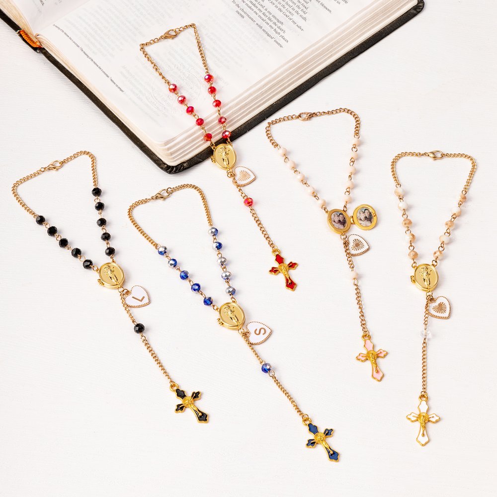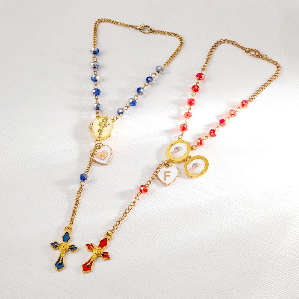 Dieser Rosenkranz-Autoanhänger besticht durch sein einzigartiges Design mit dem Jesuskind und einem Kreuz als Schlüsselelemente, die eine reiche religiöse Atmosphäre verkörpern. Ein Highlight ist die individuell gestaltbare Klappe, auf der Sie ein oder zwei Lieblingsfotos platzieren können. Die Kette ist in fünf verschiedenen Farben erhältlich und ist mit Perlen und einer Herzinitiale versehen. Das gesamte Design ist raffiniert und elegant, hebt sich von der Masse ab und strahlt einen einzigartigen Charme aus.