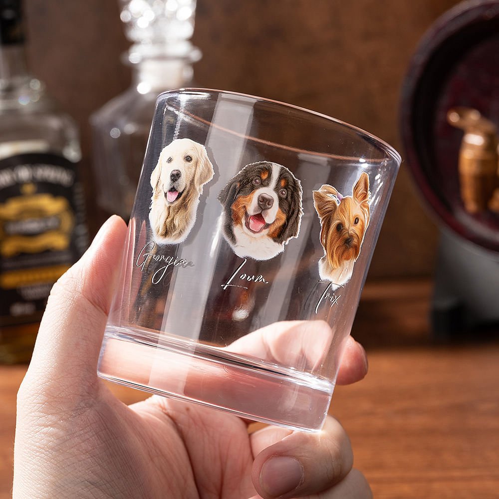 Dieses altmodische Whiskeyglas bietet eine einzigartige Möglichkeit, Ihre geliebten Haustiere zu feiern. Mit 1 bis 4 individuellen Fotos Ihrer Hunde oder Katzen und deren Namen verwandelt es ein klassisches Trinkgefäß in eine personalisierte Hommage an Ihr Haustier.