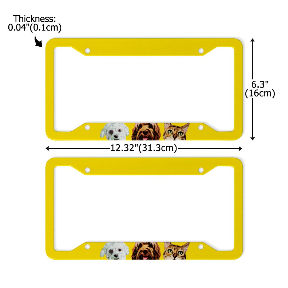 Dieser benutzerdefinierte Nummernschildrahmen ist für Haustierfotos konzipiert. Es ermöglicht die Anpassung eines Textes in der oberen Reihe und 1-5 Tierfotos in der unteren Reihe, die Hunde, Katzen oder eine Mischung aus Tieren zeigen. Das Design des 2er-Sets kann sowohl für die vorderen als auch für die hinteren Nummernschilder verwendet werden. Es unterstreicht den individuellen Geschmack junger Autobesitzer und gibt Ihnen bei jeder Fahrt das Gefühl, dass Ihr geliebtes Haustier Sie begleitet.