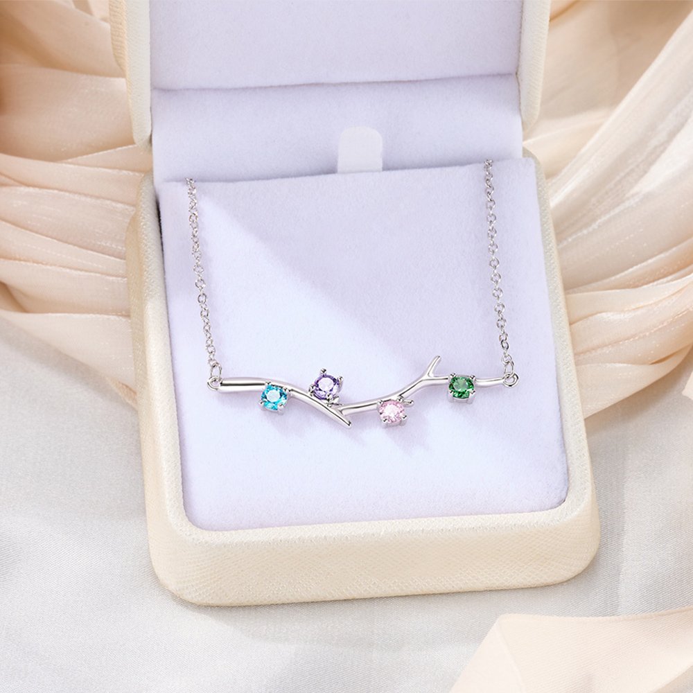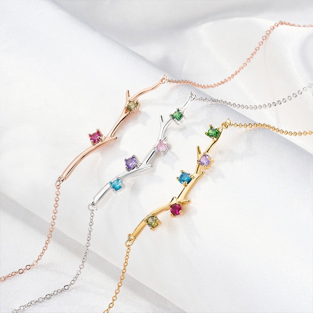 Die Einzigartigkeit dieser Halskette liegt in ihren individuellen Gestaltungsmöglichkeiten. Mit Zweigen als Design-Inspiration können Sie den Geburtsstein wählen, der jedes Familienmitglied repräsentiert und in die Kette eingelegt werden soll. Durch die Kombination verschiedener heller Geburtssteine können Sie ein einzigartiges Schmuckstück schaffen, das zu Ihrer Familiengeschichte gehört. Jede Halskette trägt eine einzigartige Familienemotion und Bedeutung.