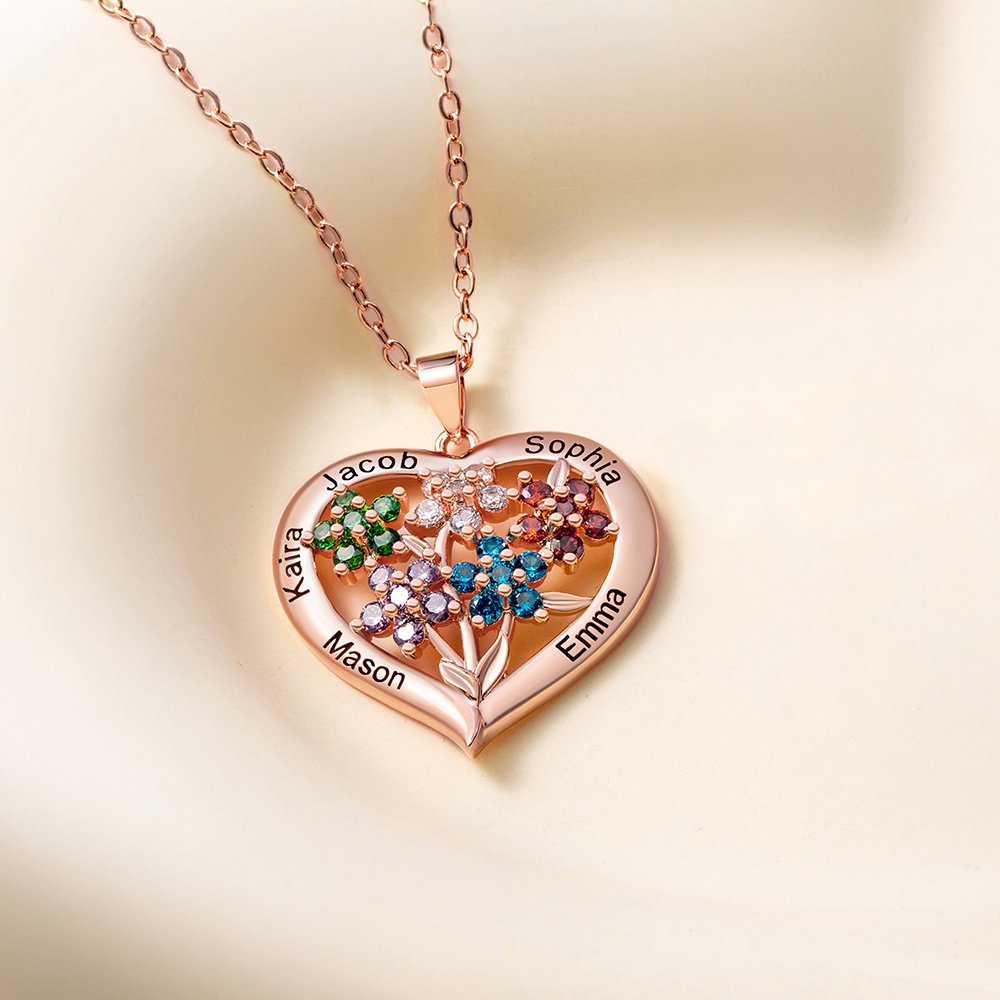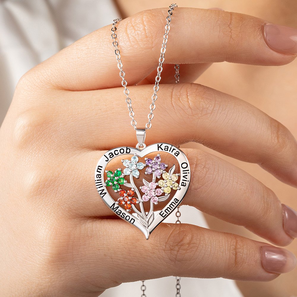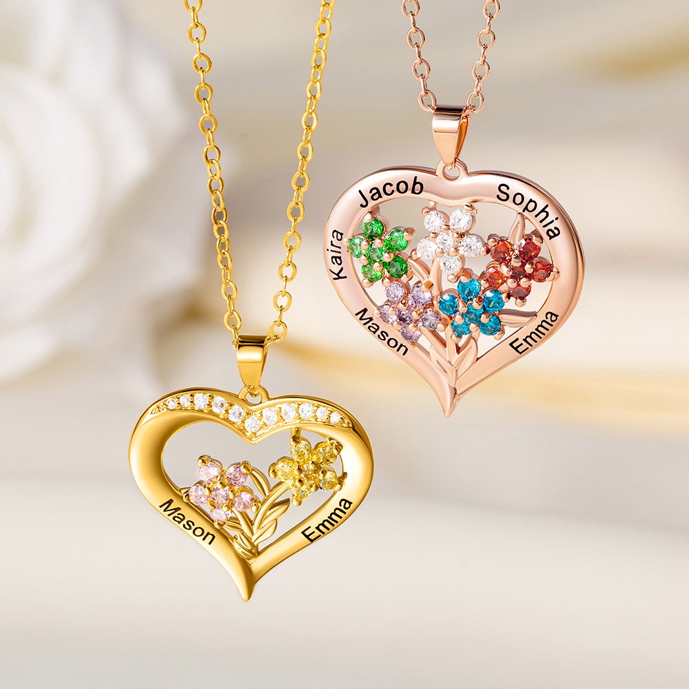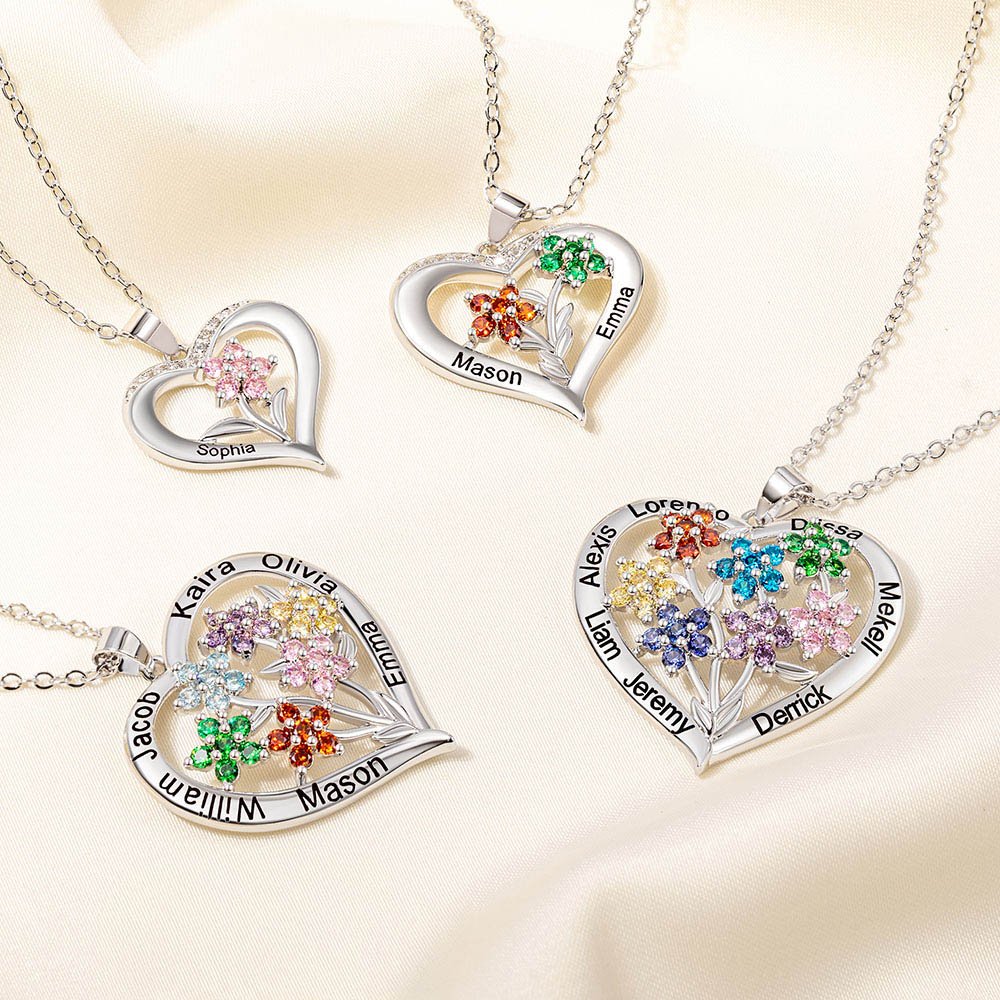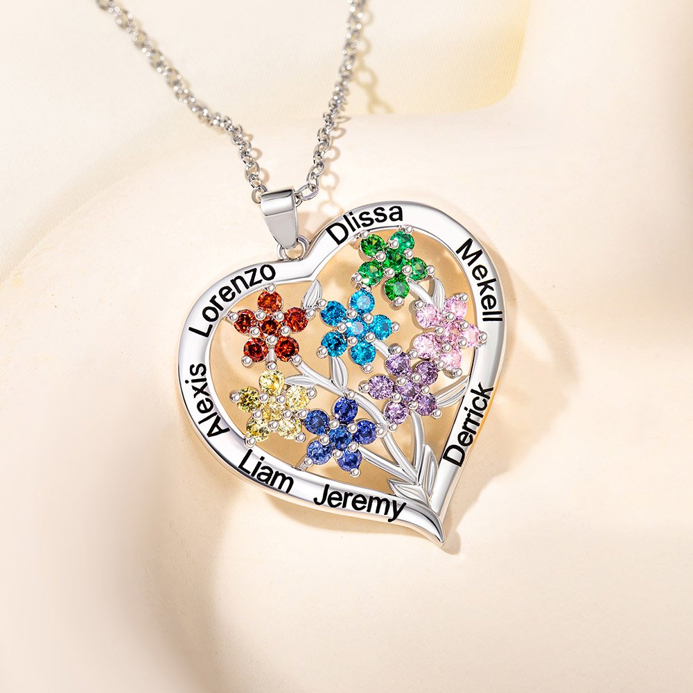 Mit unserer personalisierten Blumen-Geburtsstein-Herz-Halskette können Sie den Zusammenhalt der Familie auf besondere Weise feiern. Mit bis zu acht Geburtssteinblumen und acht Namen, die jeweils für ein geliebtes Familienmitglied stehen, können Sie ein einzigartiges Schmuckstück kreieren, das die Liebe und Einheit Ihrer Familie auf wunderbare Weise zum Ausdruck bringt.