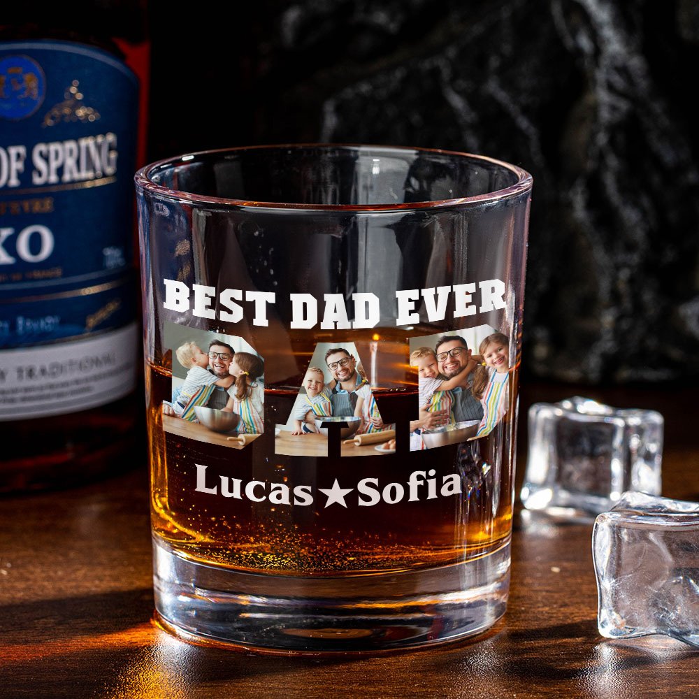 Dieses Whiskey-Glas kann mit einem speziellen Spitznamen, wie "DAD", angepasst werden, und Ihr Lieblingsfoto kann auf den Hintergrund jedes Buchstabens gedruckt werden. Sie können das Glas auch mit den Namen von 1-12 Kindern oder einem beliebigen Text versehen. Jedes Mal, wenn du es in die Hand nimmst, wird es dir unendlich viel Freude bereiten - es ist ein wertvolles Souvenir, das mit Sicherheit unvergessliche Erinnerungen hinterlassen wird.