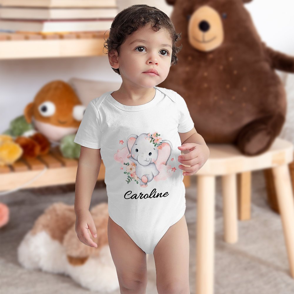 Unser niedlicher Elefanten-Muttertags-Baby-Strampler und das T-Shirt sind ein bezauberndes und individuelles Geschenk für Neugeborene. Dieses Design bringt Komfort und Wärme für Babys mit einem verspielten Elefanten und warmen Blumen. Fügen Sie den Namen des Babys hinzu und kreieren Sie ein einzigartiges Geschenk für den ersten Muttertag.