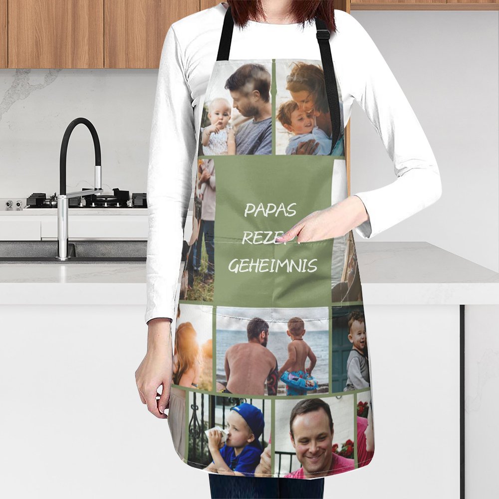 Personalisieren Sie die Farbe der Schürze und den Textinhalt, den Sie anpassen möchten, sowie laden Sie Ihre besten Fotos, machen Sie einfach eine Collage Foto Schürze nur für Sie, es ist ein ideales Geschenk für Familie, Weihnachten, Geburtstag, Erntedankfest!