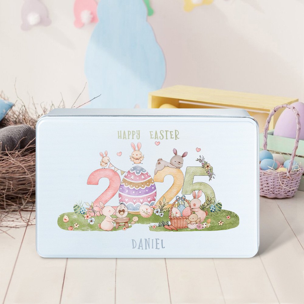 Diese 2025 Bunny Easter Egg Pattern Blechdose kommt in zwei Mustern für Sie zu wählen. Sie können sie auch mit Ihrem Namen versehen und zu Ostern verschenken. Dies ist sicher ein unvergessliches Geschenk sein.