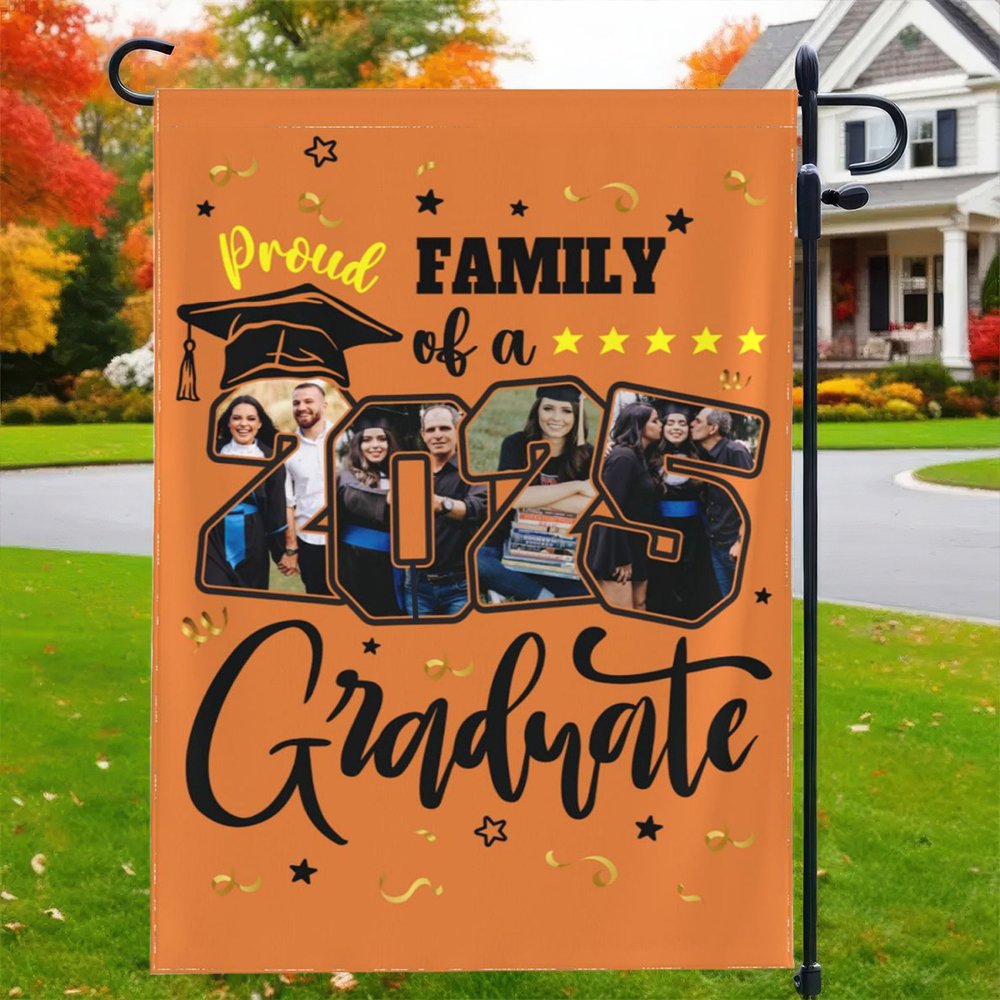 Feiern Sie den Meilenstein des Schulabschlusses mit unserer personalisierten Gartenfahne 2025 zum Schulabschluss. Diese Fahne bietet anpassbare Optionen, sodass Sie zwischen dem festen Text "FAMILY" oder Ihrer eigenen, persönlichen Nachricht wählen können. Zusätzlich können Sie vier Lieblingsfotos des Absolventen einbinden, so dass jede Fahne eine einzigartige Hommage an die Leistung des Absolventen ist.