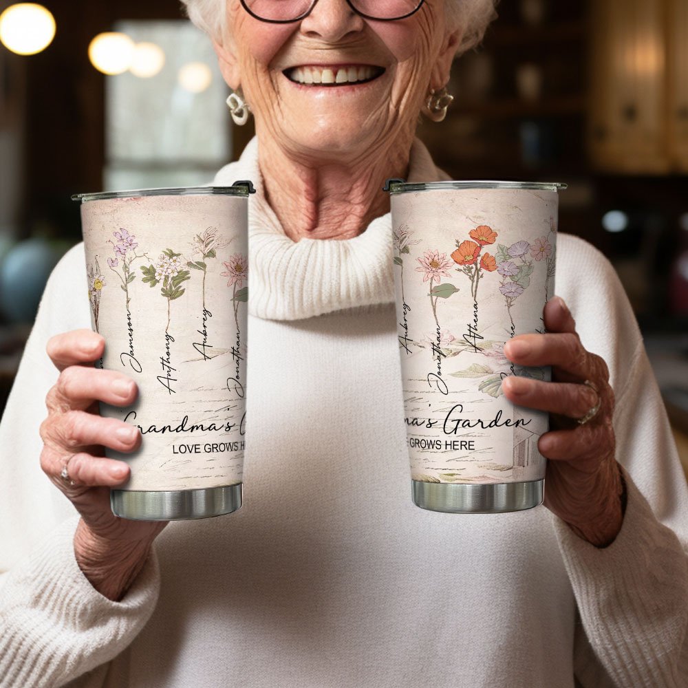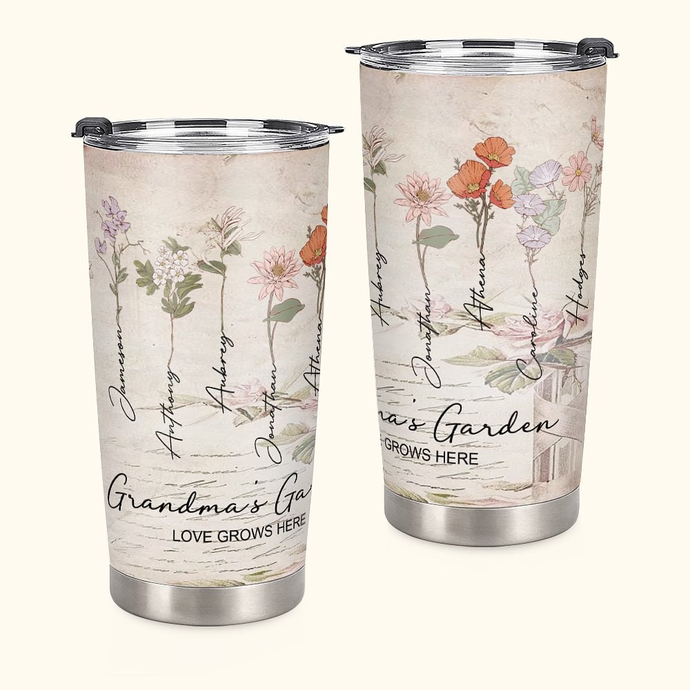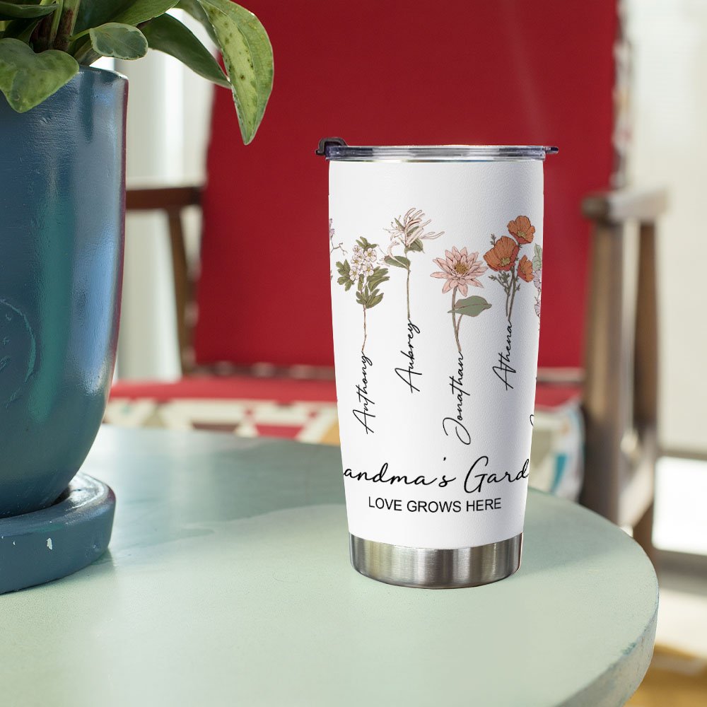 Feiern Sie Ihre Oma oder Mutter mit dem Geburtsblumenbecher am Muttertag, Erntedankfest, Geburtstag, Weihnachten usw. Die individuellen Familiennamen und Geburtsblumen machen es zu einem herzlichen Geschenk, das die einzigartigen Verbindungen innerhalb Ihrer Familie feiert.