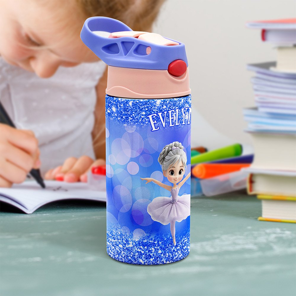 Diese Wasserflasche besticht durch ihr bezauberndes Cartoon-Ballettmädchen-Motiv vor einem glitzernden Glitzerhintergrund, das für eine skurrile und verträumte Ästhetik sorgt. Mit 5 leuchtenden Flaschenfarben und 43 bezaubernden Mustern zur Auswahl können Sie sie perfekt an die Persönlichkeit Ihres Kindes anpassen. Fügen Sie den Namen des Kindes hinzu und machen Sie die Flasche noch einzigartiger.