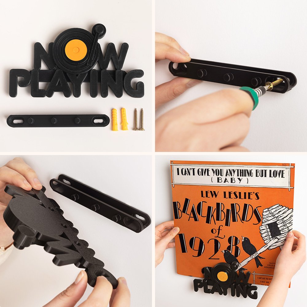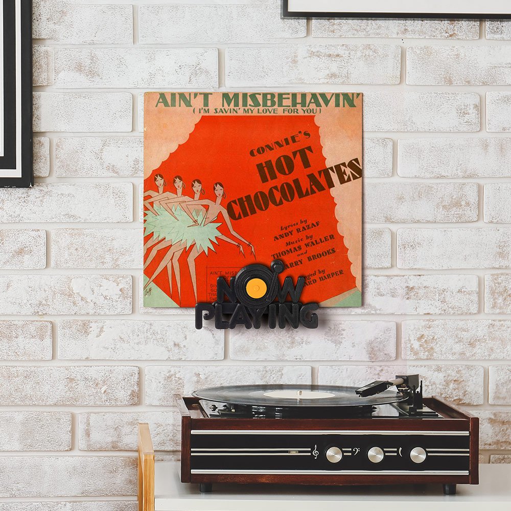 Dieser Display-Halter hat zwei Textstile, "NOW PLAYING" und "NOW SPINNING", und bis zu 23 Farben können frei mit Primär- und Sekundärfarben abgestimmt werden. Die Mini-Plattenspieler-Struktur zeigt nicht nur den Charme der Plattenkunst, sondern fügt auch einen Sinn für Kunst hinzu, der Retro und Moderne kombiniert.