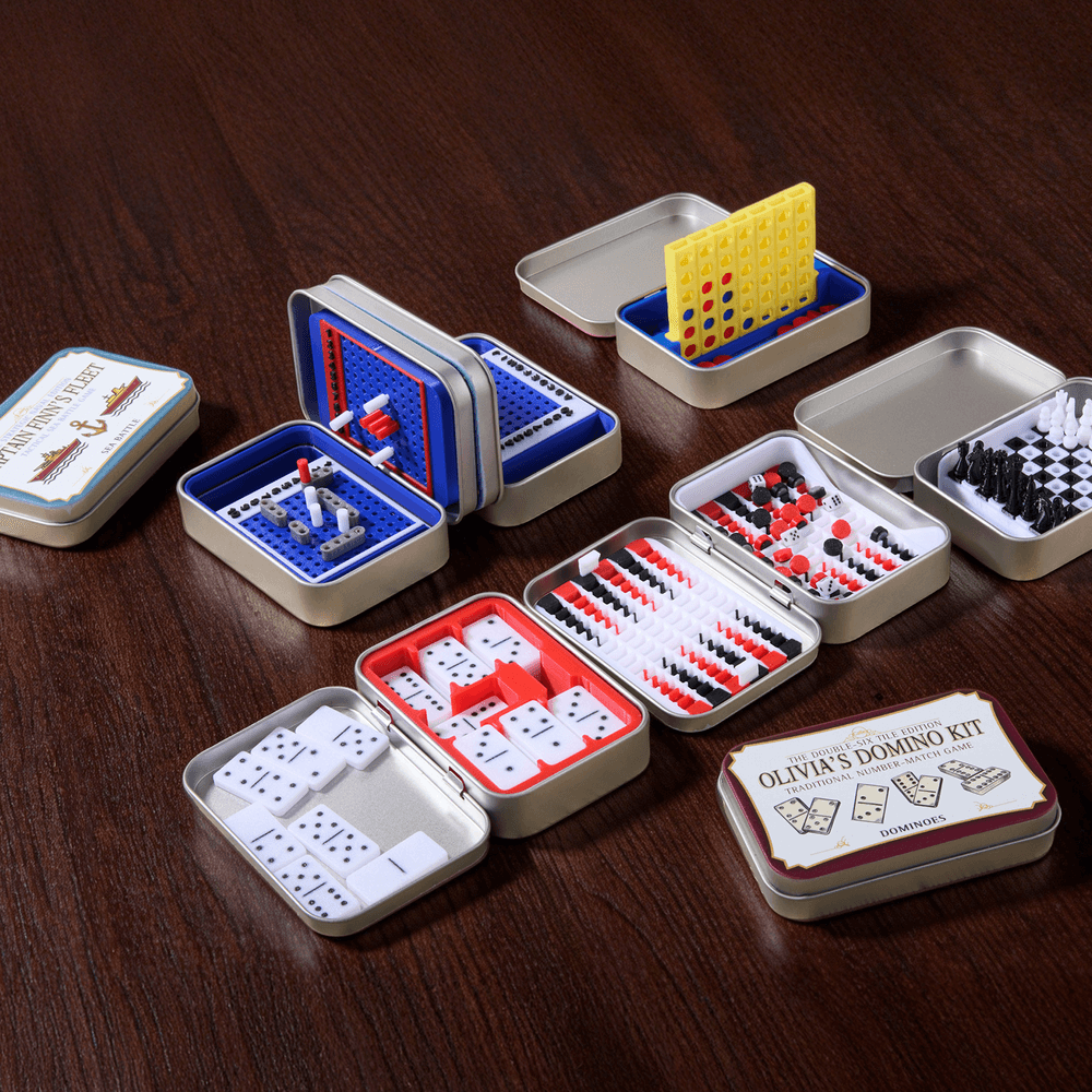 Diese kompakte Blechbox enthält klassische Spiele. Sie eignet sich perfekt für schnelle Strategiesitzungen an jedem Ort und bietet nicht nur lockere Unterhaltung, sondern schärft auch das logische Denken und fördert das soziale Miteinander.