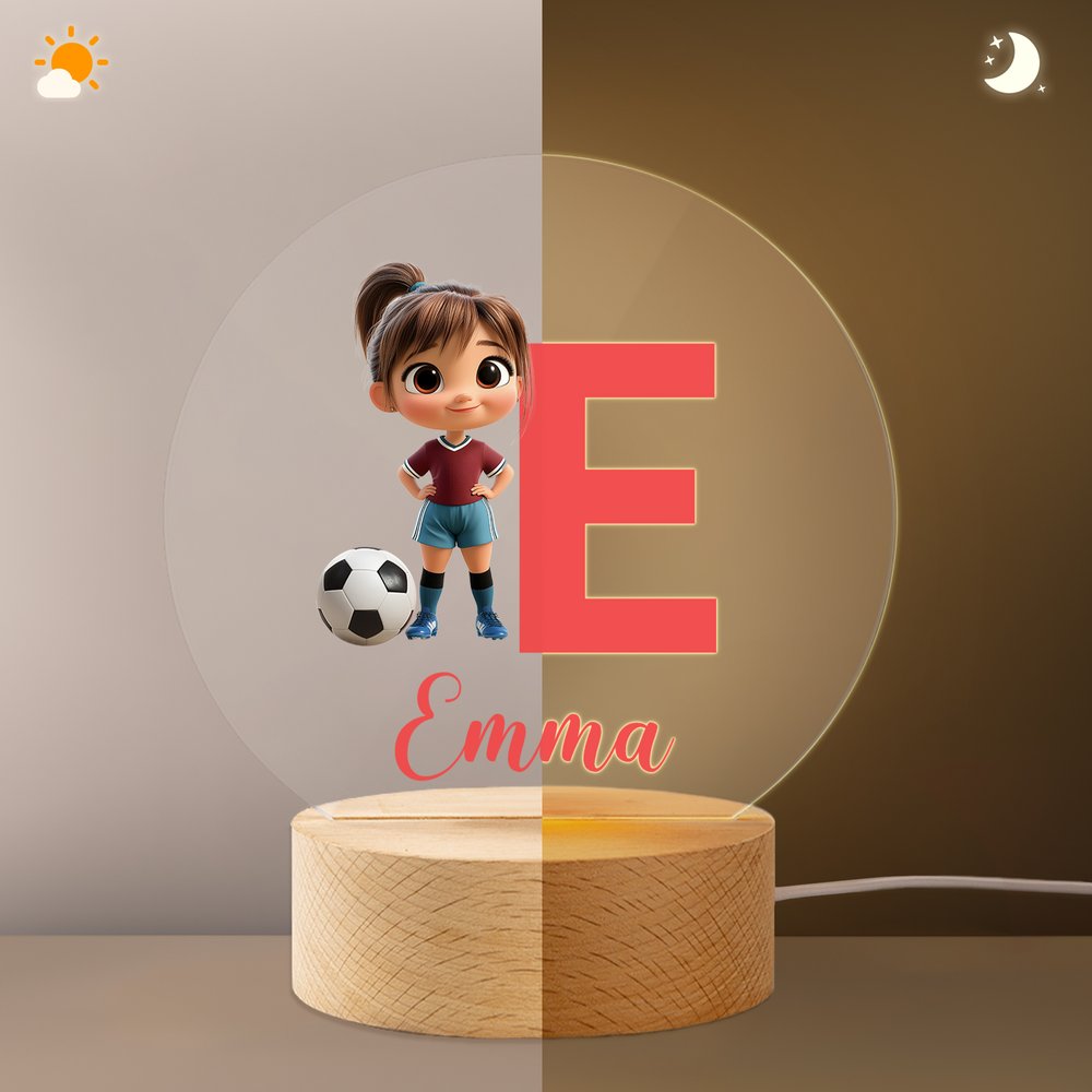Dieses Nachtlicht hat Fußball als zentrales Thema und zeigt lebendige 3D-Cartoonfiguren. Ob Schießen oder Dribbeln – es fängt die dynamischen Momente des Fußballs ein und vermittelt eine starke Dreidimensionalität. Die Namen und Initialen von Kindern können auf den Acrylplatten individuell angepasst und gedruckt werden, wodurch das Nachtlicht sportlich und gleichzeitig personalisiert wird und zu einem auffälligen Dekorationsstück im Zimmer wird.