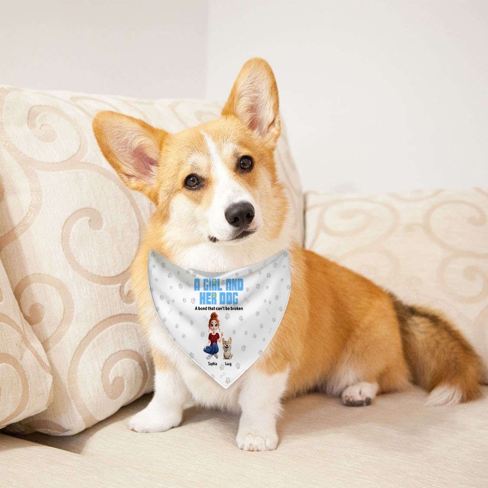 Dieses Haustier-Bandana verwendet Cartoon-Figuren und Haustier-Designs im 3D-Stil, die auf warme und heilsame Weise die tiefe emotionale Bindung zwischen Menschen und Haustieren darstellen. Jedes Bandana ist mit einem niedlichen Mädchen und 1-5 Hunden bedruckt, und der sorgfältig gestaltete Text "A GIRL AND HER DOG A bond that can't be broken" (Ein Mädchen und ihr Hund - eine Verbindung, die nicht gebrochen werden kann) verleiht der Geschichte und der emotionalen Tiefe einen Sinn.