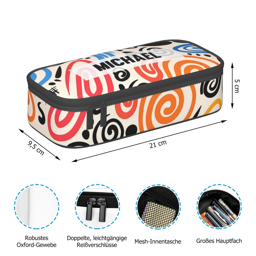 Dieses Federmäppchen ist mit abstrakten Graffiti-Mustern versehen, die durch ihre kontrastreichen, kräftigen Farben sowohl ein Spiegelbild der Street-Art als auch ein Ausdruck modernen Designs sind. Ihr Name kann auf die Oberfläche des Mäppchens gedruckt werden und bildet so eine persönliche Kennzeichnung, die sich harmonisch in die künstlerische Gestaltung einfügt, ohne die Gesamtästhetik zu stören.
