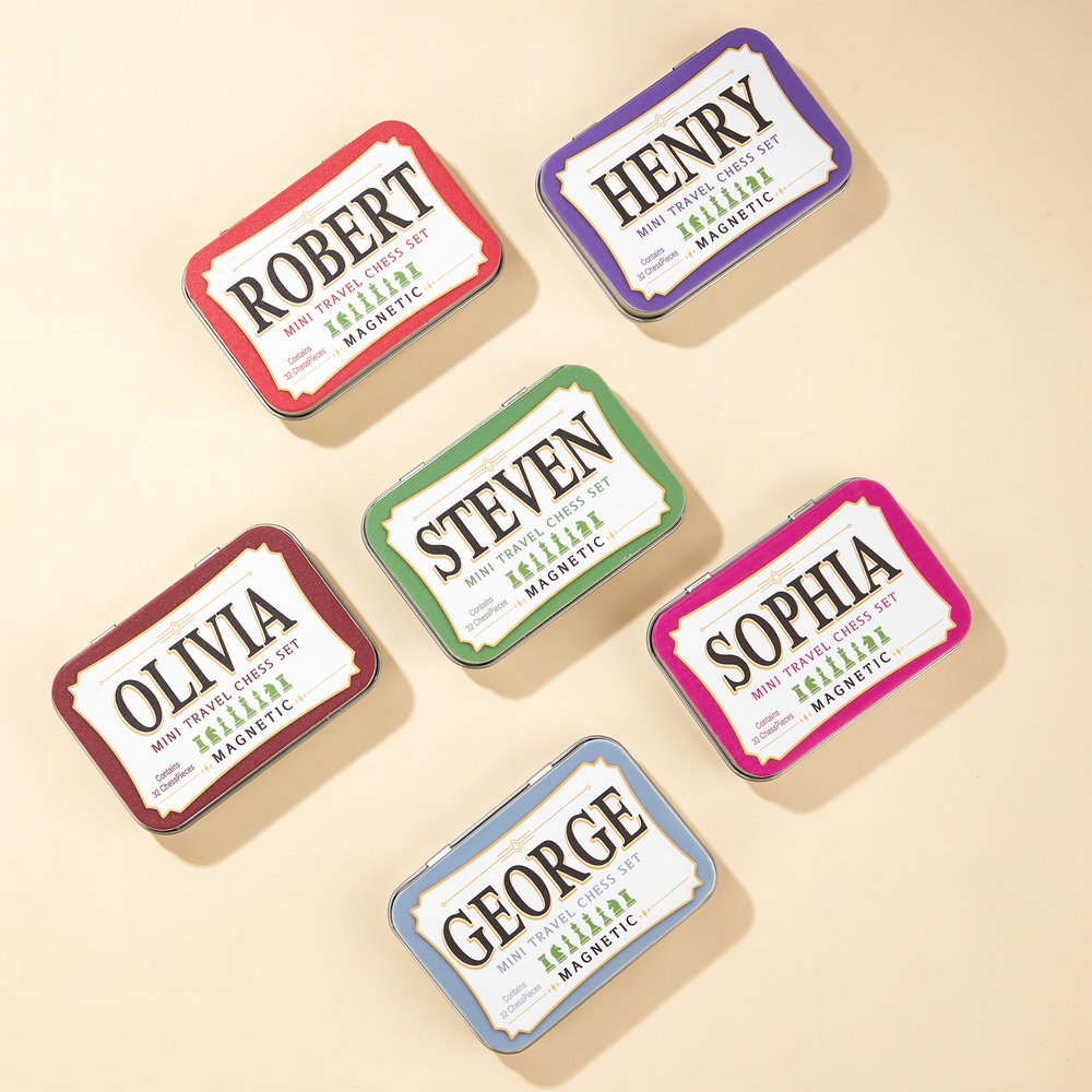 Dieses raffiniert gestaltete Miniaturschachspiel besteht aus einem magnetischen Brett und Figuren. Dank seiner kompakten Größe passt es perfekt in die beiliegende Altoids-Dose, die auch mit einem Namen auf der Oberfläche versehen werden kann, was sie zu einem persönlichen Andenken macht. Ob zu Hause oder unterwegs, dieses Set bietet immer und überall ein herrliches Schacherlebnis.