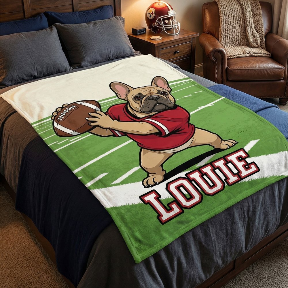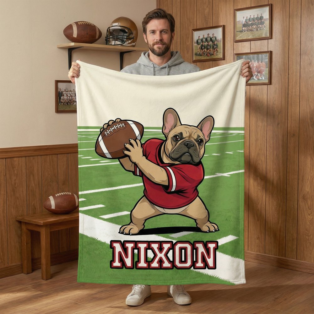 Personalisierte American Football Französisch Bulldogge weiche Decke mit Namen Home Decor Team Geburtstag Geschenk für Fußball-Liebhaber