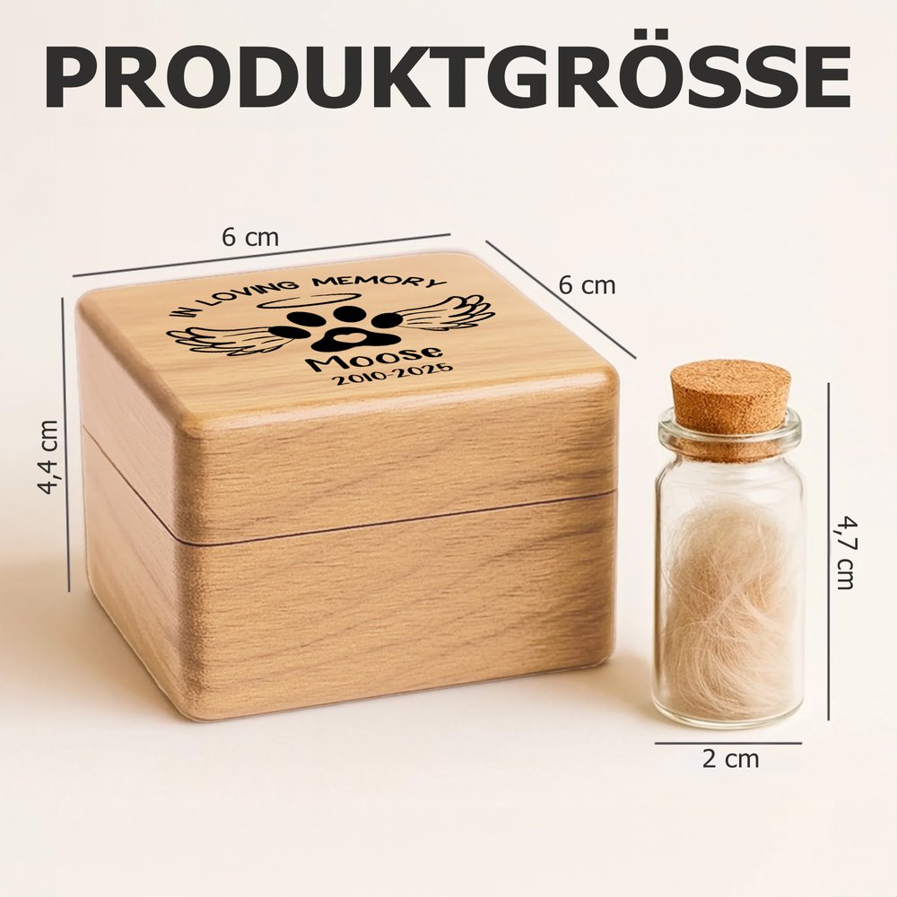 Speziell für Tierbesitzer und Tierliebhaber konzipiert, eignet sich diese Gedenkbox als tröstendes Geschenk für Freunde oder Familienmitglieder, die einen geliebten Vierbeiner verloren haben. Sie hilft den Empfängern, Trost zu finden und ihr Herz zu heilen, und wird zu einem bedeutsamen Andenken, das emotionalen Wert mit praktischer Funktionalität verbindet. So kann Liebe und die Erinnerung an die gemeinsame Zeit in einer anderen Form weiterleben.