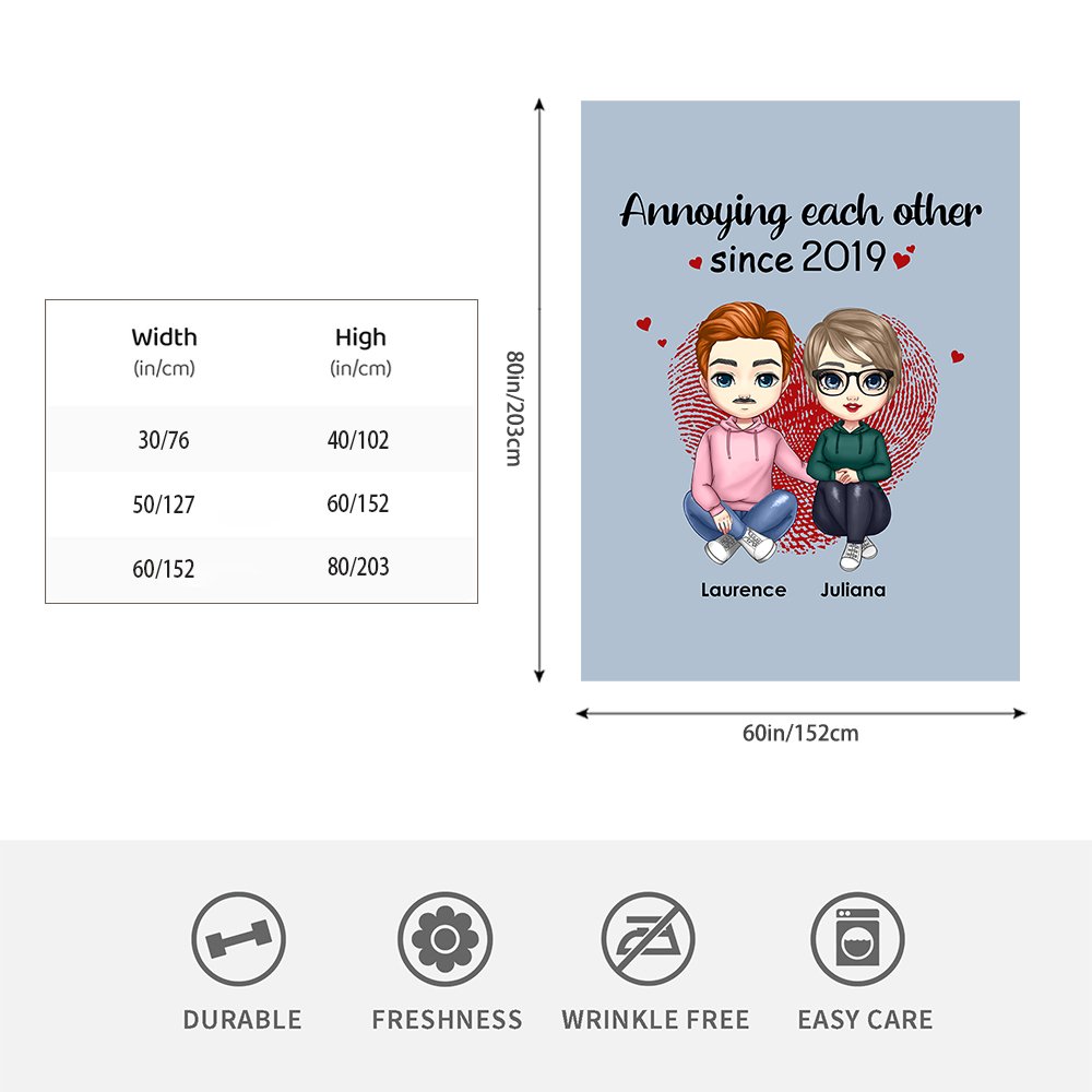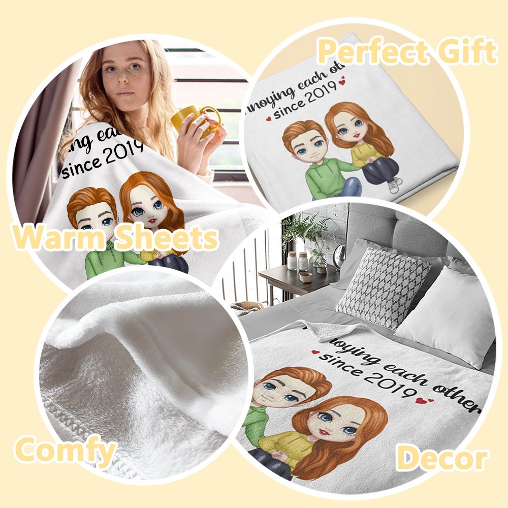 Personalisierte Annoying Each Other seit 2019 Decke weich und warm Geschenk für Paar Jahrestag Geburtstag Geschenk