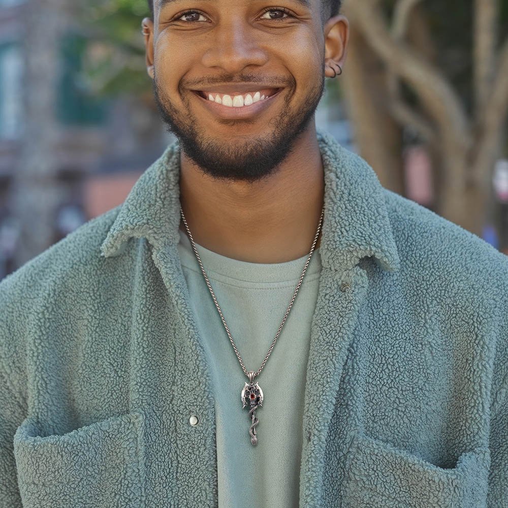 Die aus hochwertigem Messing oder 925er Sterlingsilber gefertigte Halskette ist hypoallergen und sanft zur Haut. Die filigranen Details des Axt- und Schlangendesigns zusammen mit dem leuchtenden Geburtsstein machen sie zu einem auffälligen Statement.