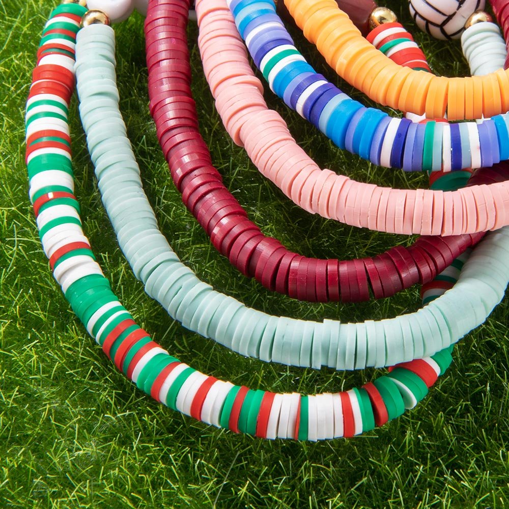 Mit seinen leuchtenden Farben und seinem trendigen Design lässt sich dieses sportliche Heishi-Armband mühelos mit Accessoires im Bohème-Stil oder Strandschmuck kombinieren. Es ist eine ausgezeichnete Wahl, wenn Sie an einer Sportveranstaltung teilnehmen oder einfach im Alltag auffallen möchten.