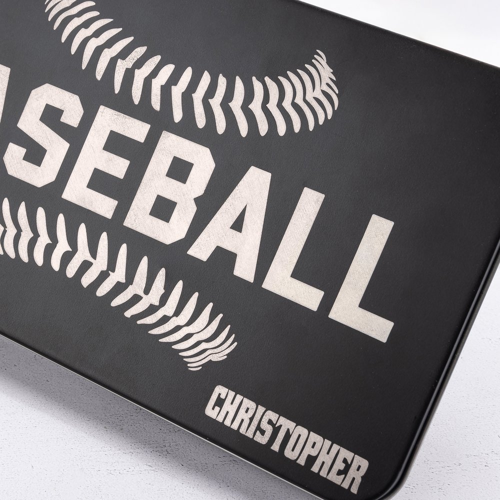 Das Board hat ein charmantes, vom Baseball inspiriertes Layout, das sofort ins Auge sticht. Die aufwändigen Details auf dem Brett, vom rautenförmigen Baseballmuster bis hin zu den winzigen Details, sind eine Hommage an den geliebten Sport. Ihr Name oder der Name des glücklichen Empfängers kann elegant auf der mitgelieferten Blechdose eingraviert werden, was dieses Brett zu einem wirklich besonderen und einzigartigen Andenken macht.