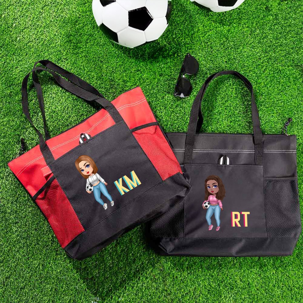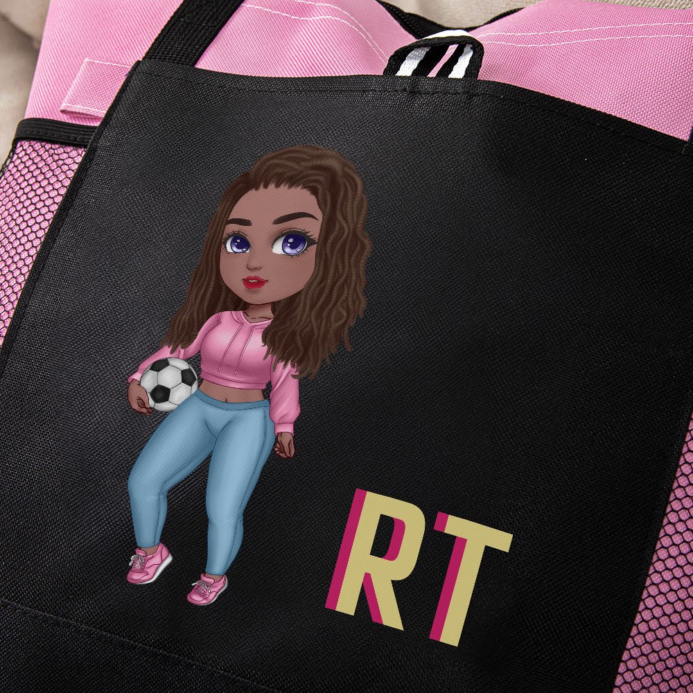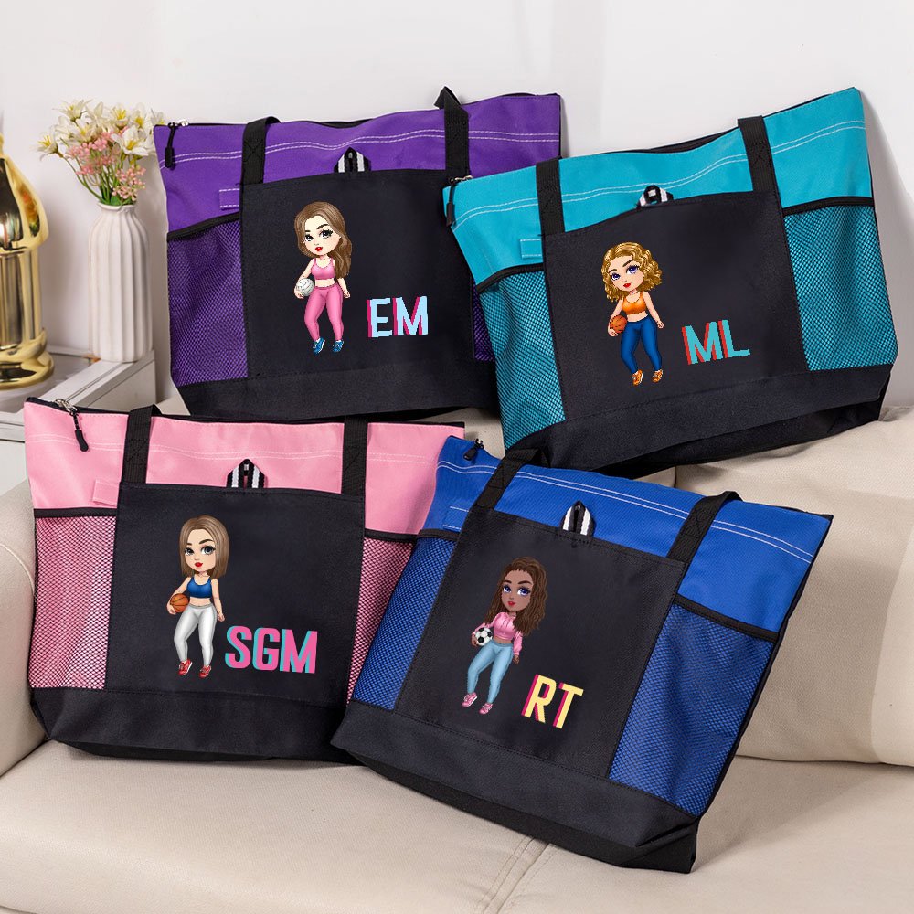 Diese Tragetasche ist für Mädchen gedacht, die Sport lieben. Die Tragetasche ist mit niedlichen Cartoon-Mädchenbildern und einer Kombination aus Monogrammen in bis zu 42 Farben bedruckt, die nach Herzenslust kombiniert werden können, damit jedes Mädchen seine einzigartige Persönlichkeit und seinen Stil zeigen kann.