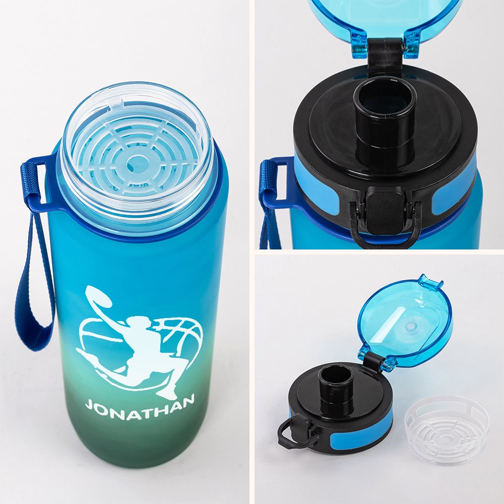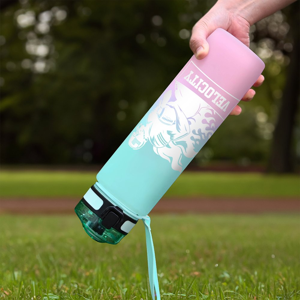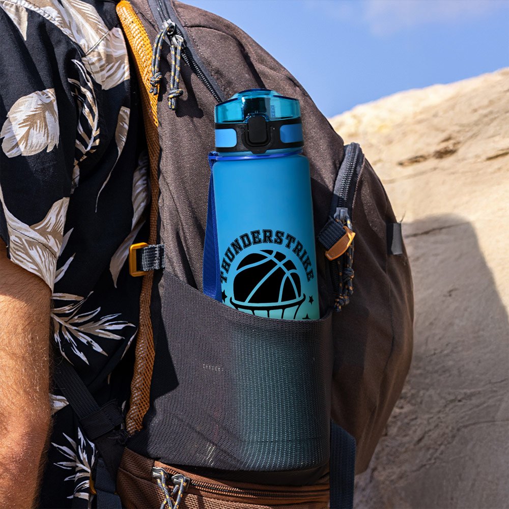 Diese BPA-freie Wasserflasche enthält keine schädlichen Chemikalien und ist somit sowohl für Kinder als auch Erwachsene sicher. Der auslaufsichere Verschluss sorgt dafür, dass Sie die Flasche problemlos in Ihrer Tasche transportieren können. Dank des leichten Designs und des praktischen Trageriemens begleitet sie Sie bequem ins Fitnessstudio, in die Schule, ins Stadion, auf den Sportplatz oder überall dorthin, wo Ihr Tag Sie führt.
