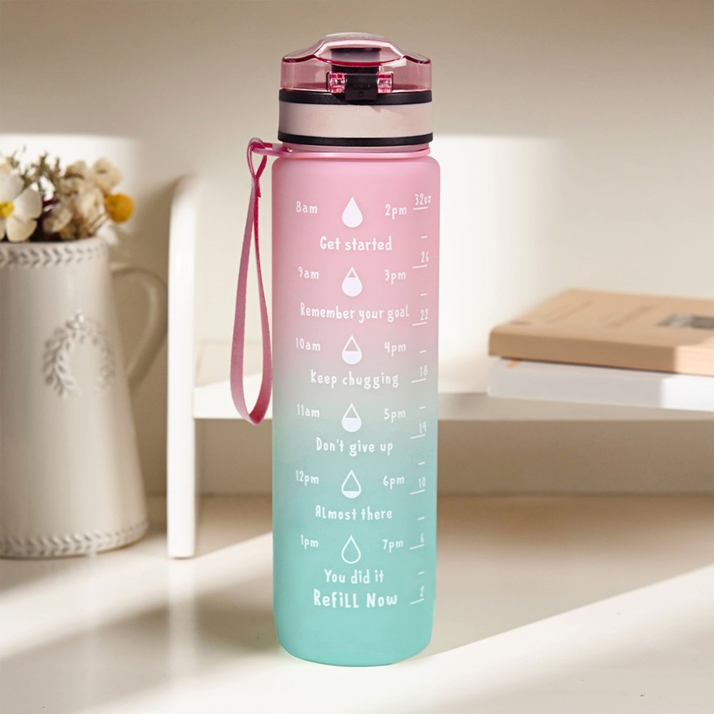 Diese Wasserflasche besticht durch ein stilvolles Skalen-Design, das nicht nur optisch überzeugt, sondern Ihnen auch hilft, Ihre Flüssigkeitszufuhr jederzeit im Blick zu behalten. Mit 1000 ml Fassungsvermögen behalten Sie unterwegs, beim Sport oder auf Reisen mühelos den Überblick. Die klaren Markierungen erleichtern es Ihnen, Ihre Trinkmenge über den Tag verteilt zu kontrollieren und Ihre Trinkziele sicher zu erreichen.