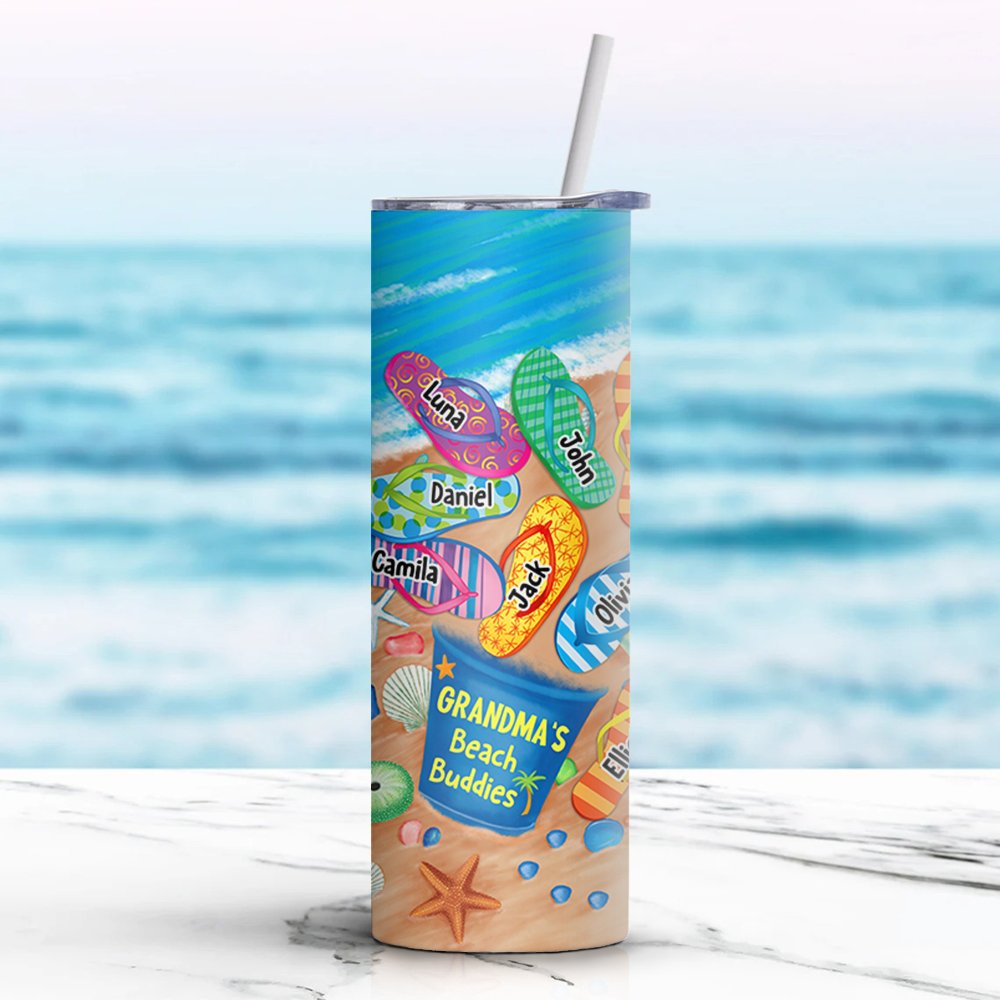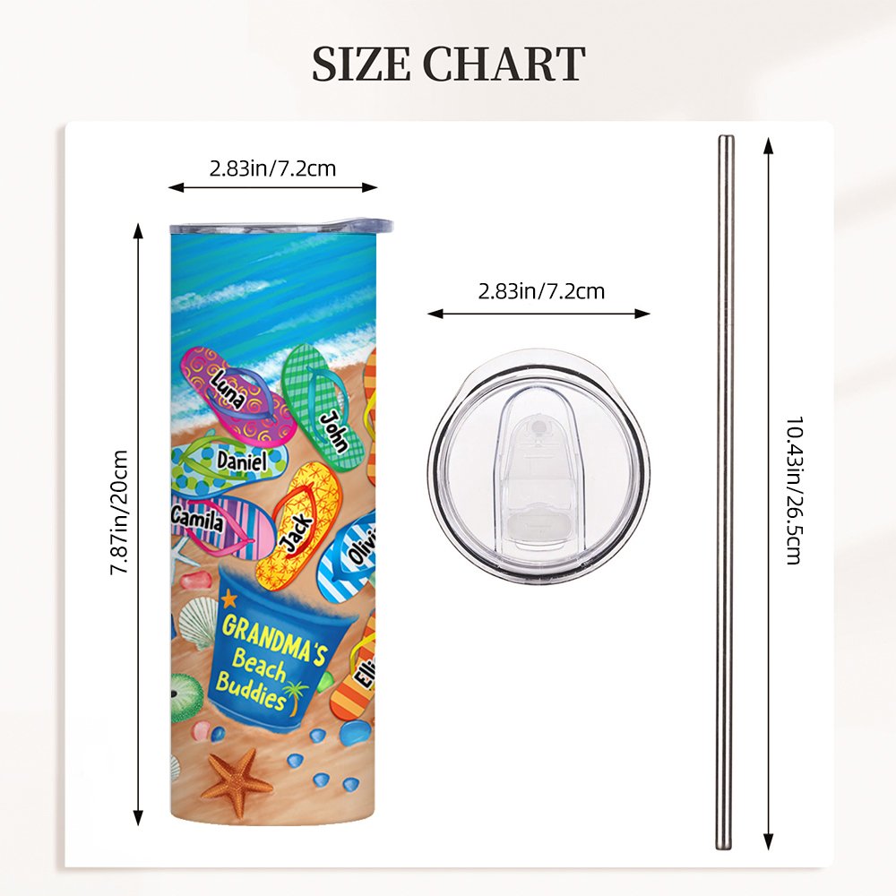 Dieser niedliche Becher bietet die Möglichkeit, den Namen auf den Hausschuhen zu personalisieren. Sie können bis zu 1-8 Namen und Pantoffeln hinzufügen, um das Geschenk noch persönlicher zu gestalten. Es ist eine wunderbare Art, Familienbande zu feiern und wird zweifellos ein lustiges Element zu jedem Strandtag hinzufügen.