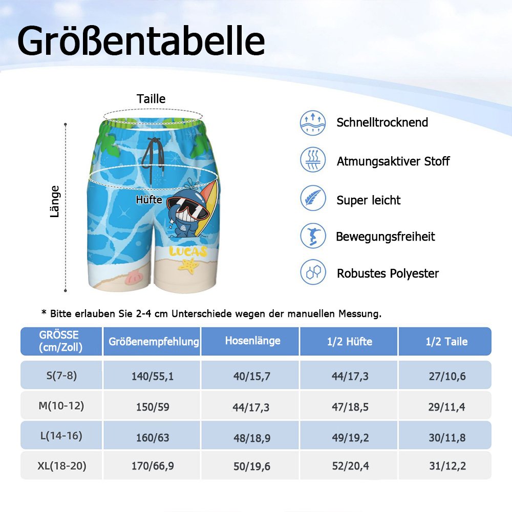 Diese personalisierten Strandhosen mit Meeresmotiven eignen sich perfekt als Sommerreisegeschenk oder als Geburtstagsüberraschung für Jungen. Lassen Sie sie ihren eigenen Surf-Stil mit individuellen Hosen, die ihren Namen neben lebendigen Meerestier-Motiven zeigen, um jeden Tag am Wasser noch besonderer zu machen!
