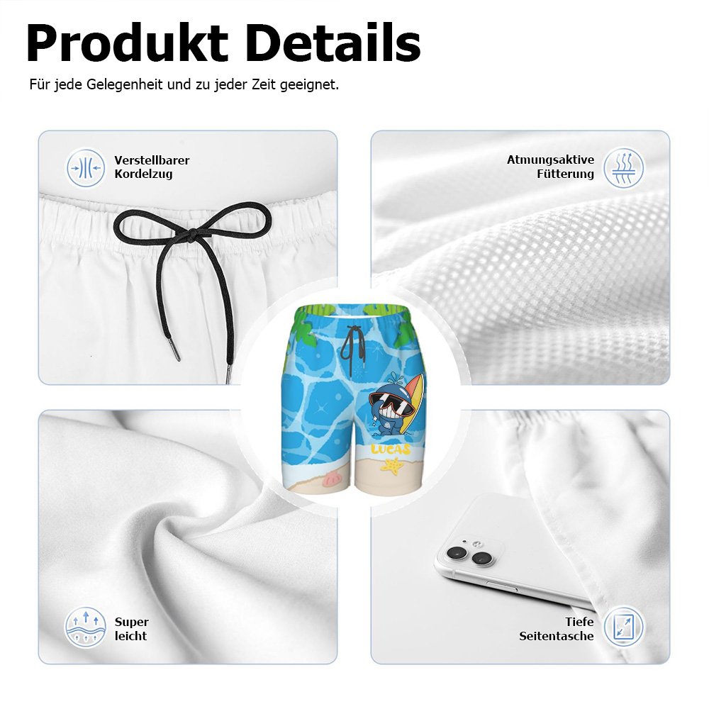 Diese personalisierte Badeshorts mit Kordelzug und Meerestiermotiven sind vollflächig bedruckt und wird Kinder begeistern. Sie können diese stylischen Strandhosen mit dem Namen Ihres Jugendlichen anpassen, damit er seine einzigartige Persönlichkeit durch lustige Meeres-Tiergrafiken ausdrücken kann, die wirklich widerspiegeln, wer er ist.