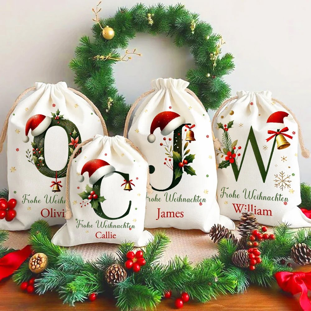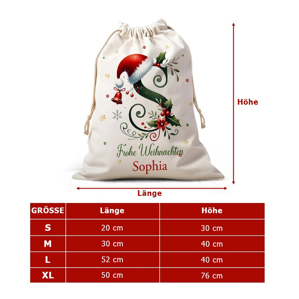 Dieser einzigartige Geschenkbeutel bietet Ihnen die Möglichkeit, ihn ganz individuell zu gestalten – mit einem Santa-Mützen-Glockenmotiv, Initiale und einem Wunschnamen. So wird jeder Beutel zu einem liebevollen Ausdruck Ihrer Zuneigung. Dank vier verfügbarer Größen hebt er sich deutlich von herkömmlichen Verpackungen ab. Die personalisierte Initiale und der Name verwandeln den Beutel von einer einfachen Geschenkverpackung in einen Träger besonderer Weihnachtsbotschaften. Ob für Kinder oder geliebte Menschen – diese persönliche Note vermittelt ein einzigartiges Weihnachtsgefühl.
