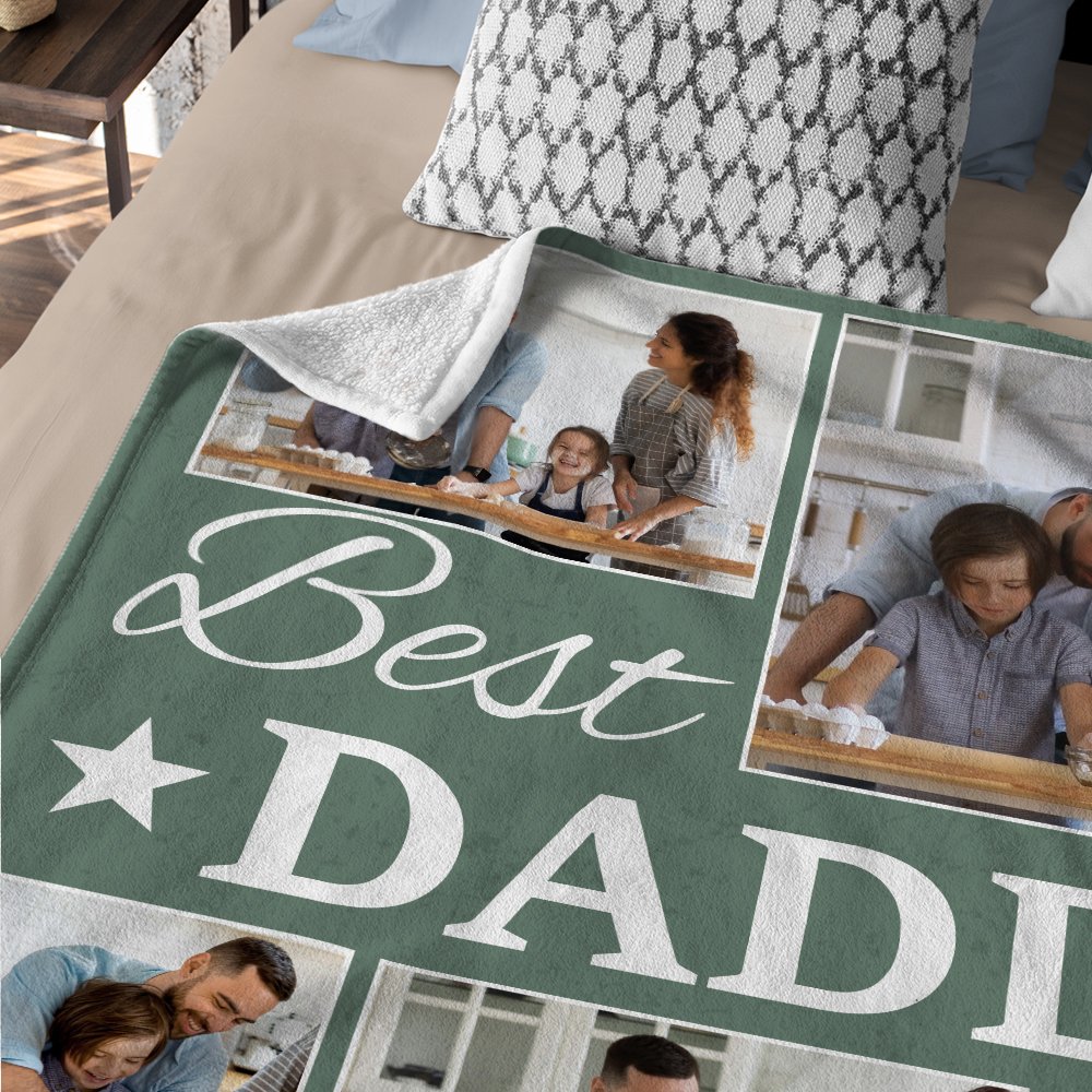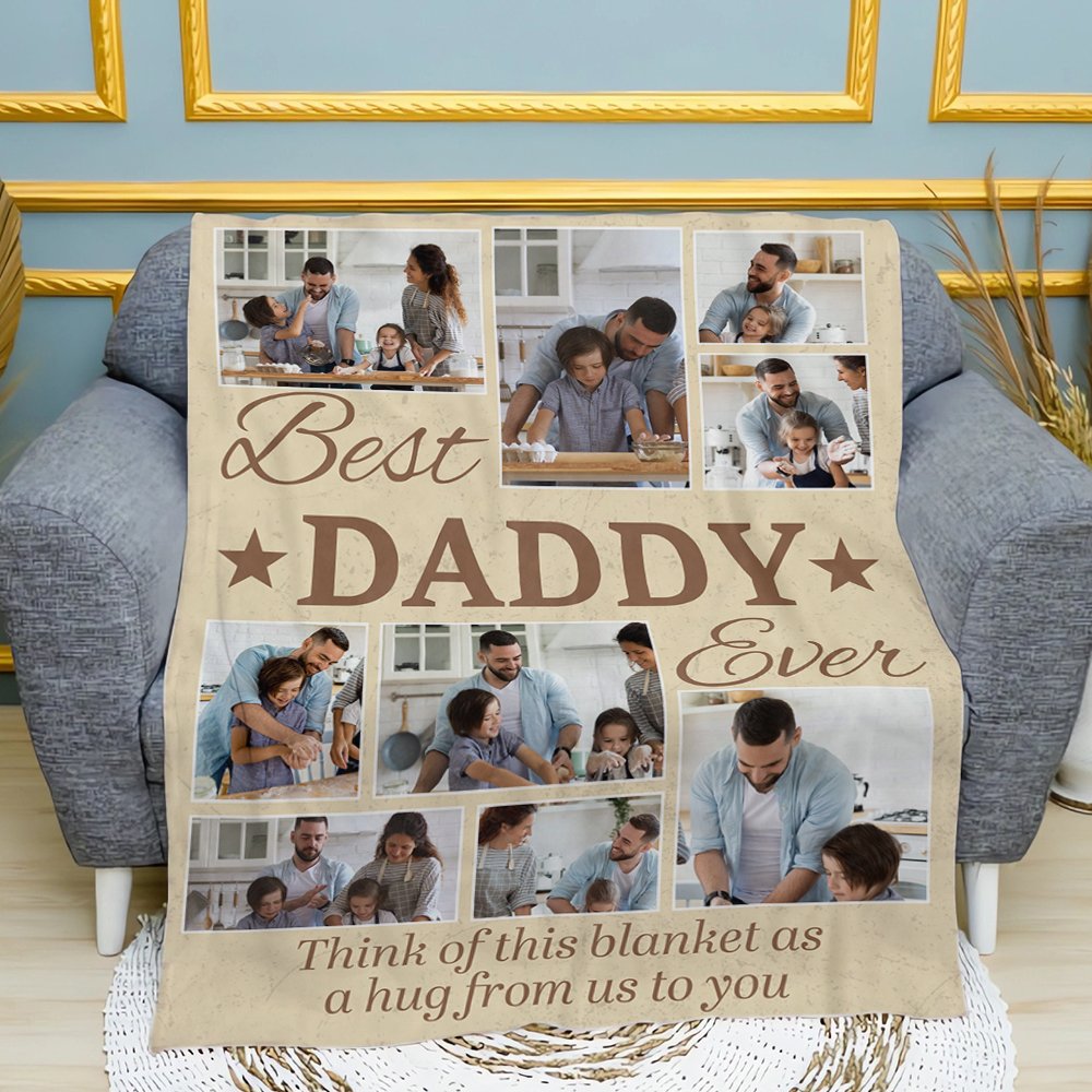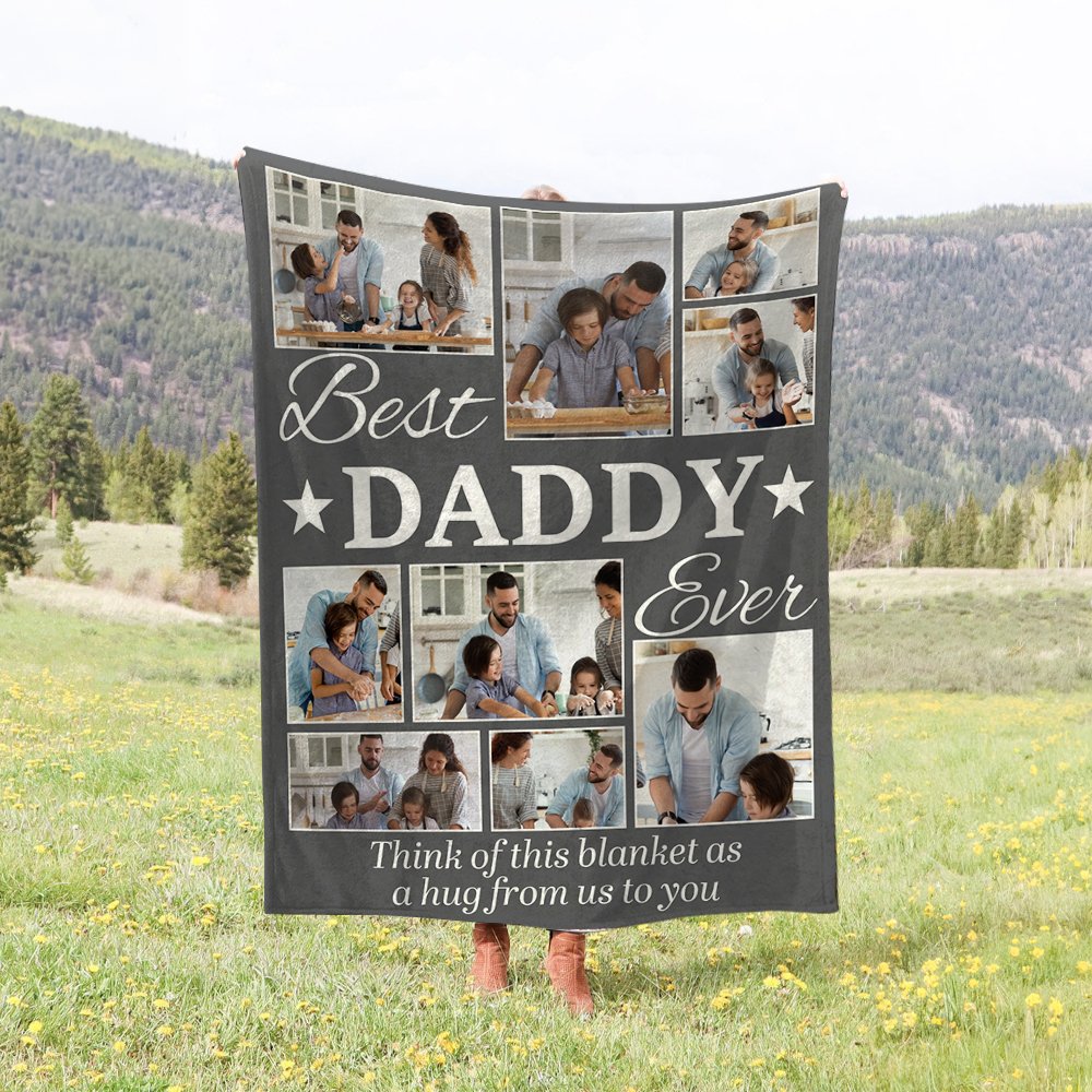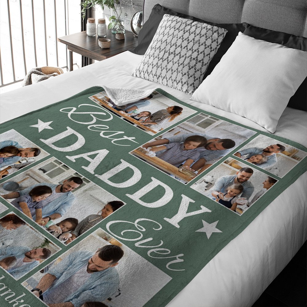 Diese Decke lässt sich mit 9 Ihrer Lieblingsfamilienfotos individuell gestalten, sodass eine herzliche Collage entsteht, die wertvolle Erinnerungen zeigt. Der Titel "Best Daddy Ever" verleiht ihr eine liebevolle Note und macht sie zu einem perfekten Geschenk, um die besondere Verbindung zwischen einem Vater und seiner Familie zu feiern.