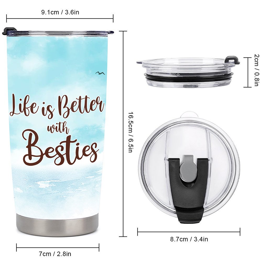 Dieser 20oz Becher ist das perfekte Geschenk für deine beste Freundin. Er ist aus hochwertigem Edelstahl gefertigt, langlebig und langlebig. Sein tragbares Design macht es einfach, mit Ihnen zu nehmen, wohin Sie gehen, ob es zur Arbeit, das Fitnessstudio oder auf einer Reise sein. (VAKUUM-ISOLIERUNG): Das einzigartige Design des Bechers hebt ihn von anderen Bechern auf dem Markt ab, und der auslaufsichere Deckel sorgt dafür, dass Ihr Getränk im Becher und nicht auf Ihrer Kleidung oder Tasche bleibt. Egal, ob Sie heiße oder kalte Getränke bevorzugen, dieser Becher fasst beides und hält sie stundenlang auf der perfekten Temperatur. (FUNKTIONALITÄT): Unsere Becher sind aus lebensmittelechtem Edelstahl gefertigt, um Stärke und Reinheit zu gewährleisten. Im Gegensatz zu anderen Reise-Kaffeebechern, die anfällig für Bruch, Rost und Beibehaltung oder Übertragung von Aromen sind, sind unsere isolierten Reisebecher hochwertiges Material und sauberen Geschmack.